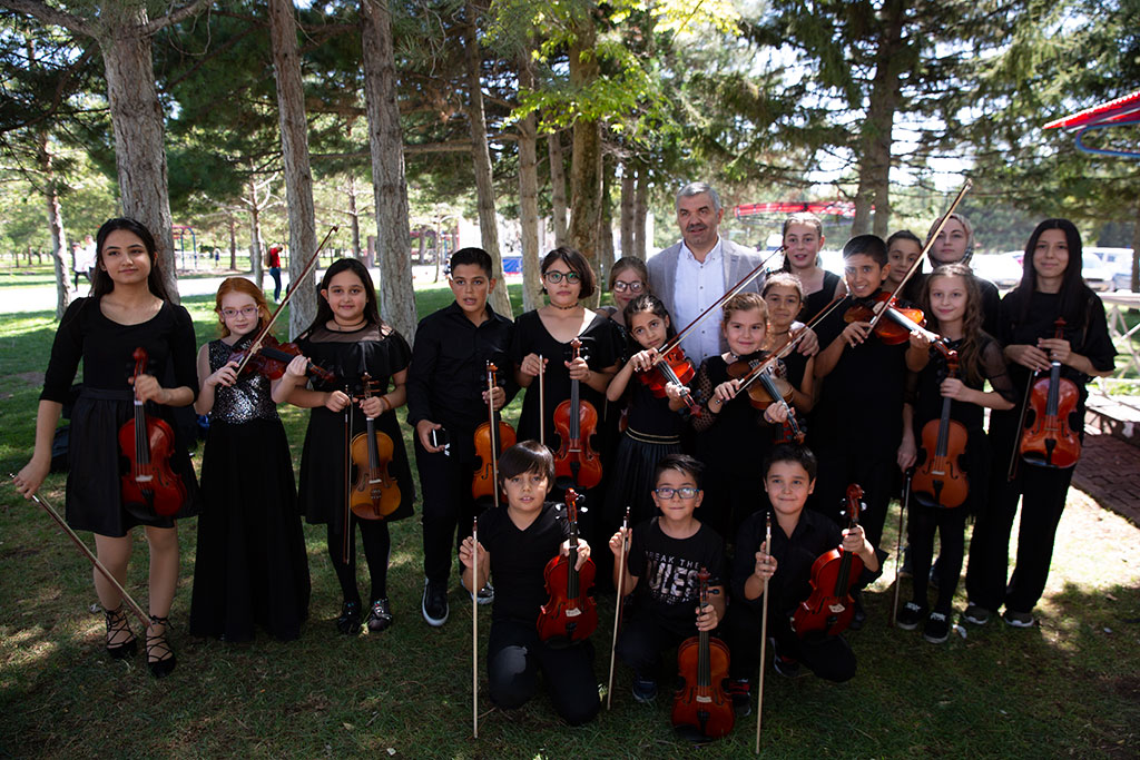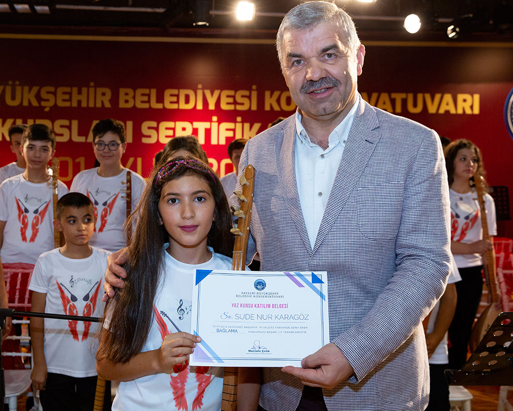 Büyükşehir Belediyesi Konservatuvarı’nın yaz dönemi kursları sona erdi. Yaz dönemi kurslarının kapanış programına katılan Büyükşehir Belediye Başkanı Mustafa Çelik, konservatuvarın bir yılda 10 bin öğrenciye eğitim verdiğini hatırlatarak bu anlamda Türkiye’nin en büyük eğitim yuvalarından birisi olduklarını söyledi. Başkan Çelik, programda duygu dolu anlar da yaşadı. Büyükşehir Belediyesi Konservatuvarı yaz dönemi kurslarının kapanış programı Kadir Has Kültür ve Sanat Merkezi’nde yapıldı. Kurslara katılanlar ve aileleri tarafından salonun tıklım tıklım doldurulduğu programa Büyükşehir Belediye Başkanı Mustafa Çelik de iştirak etti. “İÇİMİZDEKİ CEVHERLERİ ÇIKARMAK İÇİN ÇALIŞIYORUZ” Yaz kurslarının kapanışı ve sertifika töreninde yaptığı konuşmada önemli mesajlar veren Büyükşehir Belediye Başkanı Çelik, şehrin fiziki alt yapısına verdikleri önemden çok insanımızın alt yapısının çok daha donanımlı olmasına önem verdiklerini söyledi. Sporda, sanatta, bilimde, kültürde, mesleki eğitimde oluşturdukları alt yapıyla her insanımıza imkan yaratmanın gayreti içinde olduklarını vurgulayan Çelik, “Bu anlamda Türkiye’nin en iyi belediyesi olduğumuzu gururla ifade etmek istiyorum. Bu yatırımlarımızı artırarak devam ettireceğiz. Yeter ki sizler bu imkanlardan yararlanmak için azami gayret gösterin. Kayseri olarak birçok konuda çok iyiyiz. Namımız, şanımız uluslararası seviyede. Özellikle iş alemindeki başarımız tüm dünyada biliniyor; ama aynı başarıyı kültür sanatta da elde etmemiz gerekiyor. Geçmişte çok başarılı örneklerimiz var. Dünya çapında en iyi mimar olan Mimar Sinan Kayseri’den çıktı. Osmanlı’nın son dönemindeki en görkemli binaları yapan Balyan ailesi de bizde yetişti. Dünyanın en büyük yönetmenleri arasında sayılan Elia Kazan, müzikte Ahmet Gazi Ayhan bizim değerlerimiz. Ben bugün de başarılı sanatçılar çıkaracağımızı düşünüyorum. Belki en iyi yönetmen, en iyi sanatçı şu an bu salondan bulunanlar arasından çıkacak. İşte biz içinizdeki cevherleri çıkarmak için gayret ediyoruz” dedi. 100 ÖĞRENCİDEN 10 BİN ÖĞRENCİYE Konuşmasında Büyükşehir Belediyesi Konservatuvarı’nın gelişiminden de bahseden Büyükşehir Belediye Başkanı Çelik, sözlerini şöyle sürdürdü: “1985 – 1986 Eğitim – Öğretim yılında Türk Sanat Müziği ve Türk Halk Müziği korosu ile resim sınıflarına, sınavla alınan yaklaşık 100 öğrenci ile eğitime başlayan Kayseri Büyükşehir Belediyesi Konservatuvarı, bugün yılda yaklaşık 10 bin kursiyere ulaşan çok büyük bir okul haline gelmiştir. Yaz döneminde Büyükşehir Belediyemiz yanındaki Konservatuvar binamız ve Tarihi Kayseri Mahallesi’nde açtığımız Konservatuvarımızın Setenönü Şubesi ile birlikte 3 bin 250 kişiye kurslar verilmesini sağladık. Bir yılda ise 10 bin öğrenciye ulaşıyoruz. 10 bin rakamını bir cümlede söyleyip geçiyoruz; ancak konservatuvarlar için çok büyük bir rakamdır. Bugün 10 bin öğrencili üniversiteler büyük üniversite kategorisinde yer alırlar. Dolayısıyla Kayseri Büyükşehir Belediyesi Konservatuvarı 7’den 70’e her yaş grubundaki öğrencisine 21 farklı branşta kurs veren çok büyük bir eğitim yuvasıdır. Üstelik konservatuvarımız ücretsiz olarak hizmet vermektedir.” Başkan Mustafa Çelik, sözlerinin sonunda yaz döneminden mezun olan kursiyerlerin sanat hayatlarının uzun ve başarılı olması temennisinde bulundu. BAŞKAN ÇELİK’İ DUYGULANDIRAN TÜRKÜ Daha sonra yaz dönemi mezunlarına sertifikalarını veren Başkan Mustafa Çelik, yaz dönemi kursiyerlerinin gösterilerini de izledi. Gösteriler sırasında Başkan Mustafa Çelik’in çok sevdiği “Yeni Cami Avlusunda Ezan Sesi Var” adlı türkü de seslendirildi. Türküyü dinleyen Başkan Çelik, duygu dolu anlar yaşadı. Daha sonra sahneye çıkan Başkan Çelik, bir şehit ve onu bekleyen nişanlısından bahseden türkünün hikayesini anlattı.