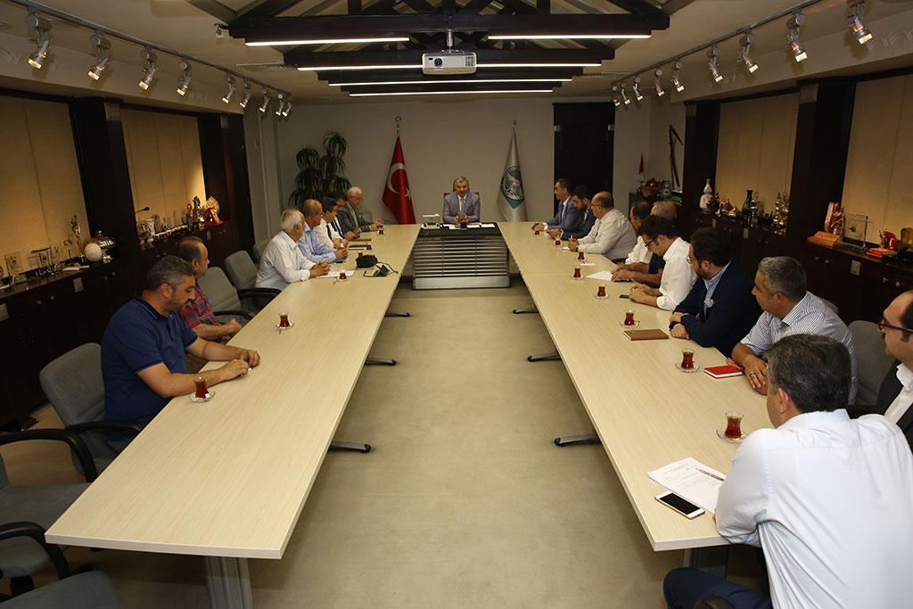 Büyükşehir Belediye Başkanı Mustafa Çelik, 15 Temmuz nedeniyle yapılacak etkinliklerle ilgili bir toplantı yaptı. Toplantıya, oda ve dernek başkanları ile ilçe belediyelerinin yöneticileri katıldı. Başkan Mustafa Çelik, 15 Temmuz gecesi sabah namazına kadar Cumhuriyet Meydanı’nda olacaklarını belirterek tüm vatandaşları davet etti. Büyükşehir Belediye Başkanı Mustafa Çelik, 15 Temmuz nedeniyle yapılacak etkinliklerin daha geniş katılımlı olması için bir toplantı gerçekleştirdi. Toplantıya Sanayi Odası Başkanı Mehmet Büyüksimitçi, Ticaret Odası Başkanı Mahmut Hiçyılmaz, dernek başkanları, gönüllü kültür teşekkülleri ve ilçe belediyelerinin yöneticileri katıldı. Büyükşehir Belediye Başkanı Çelik, 15 Temmuz etkinlikleri için Büyükşehir Belediyesi Genel Sekreteri Hüseyin Beyhan başkanlığında bir komisyon kurulacağını belirtti. Hain darbe girişiminin birinci yılında demokrasi ve milli iradeye sahip çıkmak için bir dizi organizasyon yapacaklarını ifade eden Başkan Çelik, “Türkiye çapındaki organizasyonlar Cumhurbaşkanımız Recep Tayyip Erdoğan’ın himayelerinde gerçekleşecek. Bizler de şehrimizdeki tüm yönetim dinamikleri ile birlikte organizasyonlar yapmak istiyoruz. Oda başkanları, STK üyeleri, ilçe belediyeleri, dernekler ve gönüllü kültür teşekkürlerinin de yapmak istediği programlar var. Geçen yıl Cumhurbaşkanımızın talimatıyla meydanlara hep birlikte çıktık. Cumhurbaşkanımızın kararlı duruşu, milletimizin desteği ve Rabbimin de yardımıyla 40 yıllık hain planı bozduk. 15 Temmuz’un yıldönümünde de aynı ruhla meydanda olalım istiyoruz” dedi. Büyükşehir Belediyesi’nin Cumhuriyet Meydanı’nda her türlü düzenlemeyi yapacağını, ilçe belediyelerinin çadırlarını kuracağını dile getiren Başkan Mustafa Çelik, “Bir hafta boyunca etkinlikler yapacağız. Konuşmacılar, sanatçılar getireceğiz. 15 Temmuz’da da sabah namazına kadar meydandayız. Sabah namazından sonra dağılacağız. Toplu taşımada tüm otobüsler ve raylı sistem sabaha kadar çalışacak. Bu arada şehitlerimizin sayısı kadar hatim indirilmesi için çalışma başlattık. Farklı kurum ve kuruluşların da çalışmaları var. İnşallah geçen seneki coşku ve heyecanla bir arada olacağız. Şimdiden tüm hemşehrilerimizi 15 Temmuz’da Cumhuriyet Meydanı’na davet ediyorum” diye konuştu.
