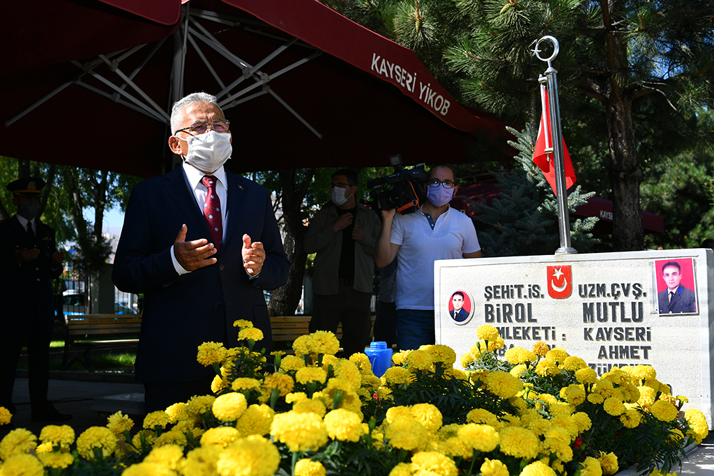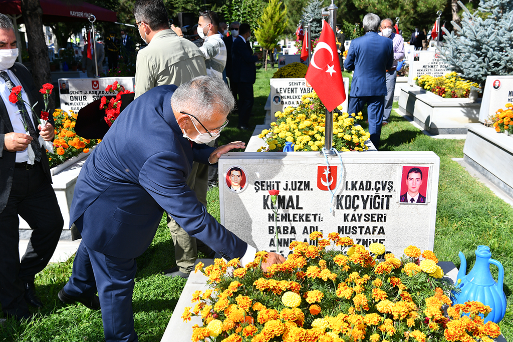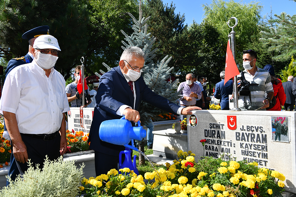 Kayseri Büyükşehir Belediye Başkanı Dr. Memduh Büyükkılıç, 30 Ağustos Zafer Bayramı dolayısıyla düzenlenen programlara katıldı. Cumhuriyet Meydanı’nda başlayan 30 Ağustos Zafer Bayramı programına Büyükşehir Belediye Başkanı Dr. Memduh Büyükkılıç’ın yanı sıra Kayseri Valisi Şehmus Günaydın, Kayseri Garnizon Komutanı Hava Pilot Tuğgeneral Aziz Adalı ve Kayseri Protokolü katıldı. Cumhuriyet Meydanı’nda tören, Çelenk Sunumu ile başladı. Cumhuriyet Meydanı’nda başlayan programlar Kartal Şehitliği ve Polis Şehitliği ziyareti ile devam etti. Kartal Şehitliği ziyaretinde konuşan Başkan Memduh Büyükkılıç, “30 Ağustos Zafer Bayramını tebrik ediyorum. Şehitlerimizi rahmetle ve minnetle anıyorum. Tarihi bir kez daha tekerrür ettirmeye çalışıyorlar. Nitekim Akdeniz’de yapmış olduğumuz çalışmada bizim dışımızdakilerin tamamının bir anlayış içerisinde üstümüze geliyor olması veya birlikte hareket ediyor olması da bunu gösteriyor. Demek ki tarihten ders almamışlar diye de burada ifade etmek istiyorum. Bizim bu anlayış içerisinde birliğimizi, beraberliğimizi Ay Yıldızlı Türk Bayrağımızın altında dayanışmamızı mutlaka sürdürmemiz ve birbirimize sahip çıkmamız lazım. Ufak hesapların adamı olmamamız lazım. Biz Türk Milletine minnet duyuyoruz. Bizlere bu toprakları vatan olarak kazandıran şehitlerimizin hepsini rahmetle minnetle anıyoruz” dedi. 30 Ağustos zafer bayramını tebrik eden Vali Şehmus Günaydın da başta Gazi Mustafa Kemal Paşa olmak üzere tüm şehitleri rahmet ve minnetle yad ettiklerini belirterek “ Kayseri olarak şehitlerimizin huzuruna geldik. Bu cennet vatanı bize yurt olarak bırakan kimseyi asla unutmayacağız” dedi.