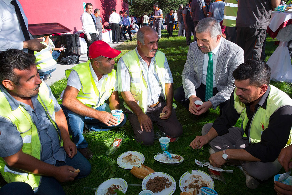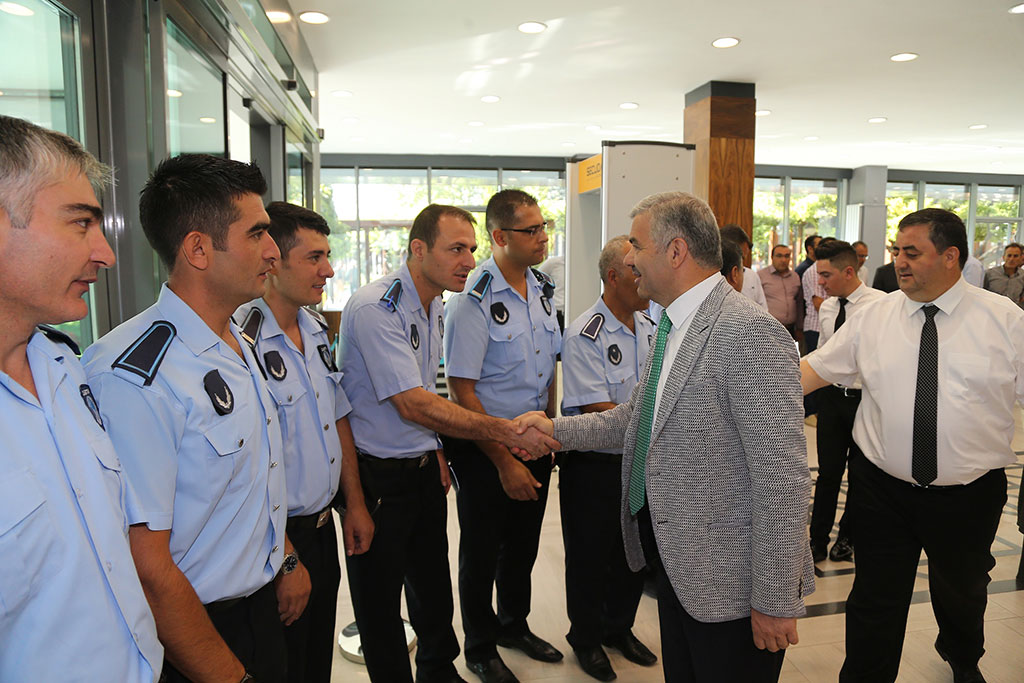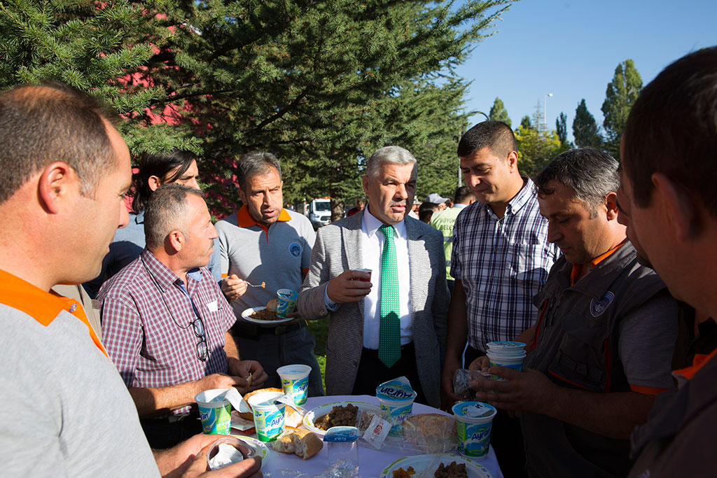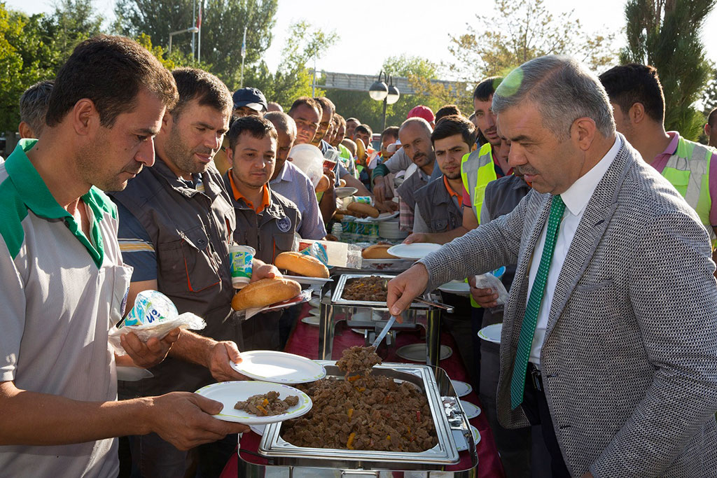 Büyükşehir Belediye Başkanı Mustafa Çelik, bayram sonrası ilk mesai gününde personelle bayramlaştı. Başkan Çelik, Büyükşehir Belediyesi’nin bağlı şirketlerle birlikte 6 bin kişilik bir aile olduğunu belirtti ve tüm personelin bayramını kutladı. Büyükşehir Belediye Başkanı Mustafa Çelik, mesai saatinin başlamasıyla birlikte önce Makine İkmal Bakım ve Onarım Daire Başkanlığı Karpuzatan Atölyesi'ni ziyaret etti. Burada Makine İkmal, Fen İşleri ve Park Bahçeler Daire Başkanlıklarına bağlı personelle bir araya gelen Başkan Çelik, belediye bürokratları ve tüm personelle tek tek bayramlaştı. Başkan Mustafa Çelik, personele et ikramında da bulundu. Yaptığı konuşmada tüm çalışanların Kurban Bayramı'nı tebrik eden Başkan Çelik, "Bayramlar dinimizin şükretmemiz gereken özelliklerinden biri. Bir araya gelmenin mutluluğunu, paylaşmanın bereketini yazıyoruz. 6 bin kişilik büyük bir aileyiz. Sık sık atölyelerde, çalıştığınız birimlerde bir araya geliyoruz. Büyükşehir Belediyesi olarak her yaptığımız işte referans oluyoruz ve takip ediliyoruz. Bu başarımız sizlerin yaptığı çalışmalarla mümkün oluyor. Ekip ne kadar kuvvetliyse başarı oranı artıyor. Bu başarılı çalışma da vatandaşımızın yüzüne mutluluk olarak yansıyor. Rabbim nice bayramlara hep birlikte eriştirsin” diye konuştu. İKİNCİ BAYRAMLAŞMA BÜYÜKŞEHİR'DE Bayram tatilinin ardından ilk mesai gününde Büyükşehir Belediyesi hizmet binasında da bir bayramlaşma gerçekleştirildi. Başkanlık girişinde yapılan bayramlaşmaya Büyükşehir Belediye Başkanı Mustafa Çelik de katıldı. Tüm personelle tek tek bayramlaşan Başkan Çelik, mesai arkadaşlarının bayramını kutladı ve bayram tatilini nasıl geçirdikleriyle ilgili sohbet etti. Başkan Çelik, her günün bayram havasında mutlu, huzurlu ve bereketli geçmesi temennisinde bulundu.