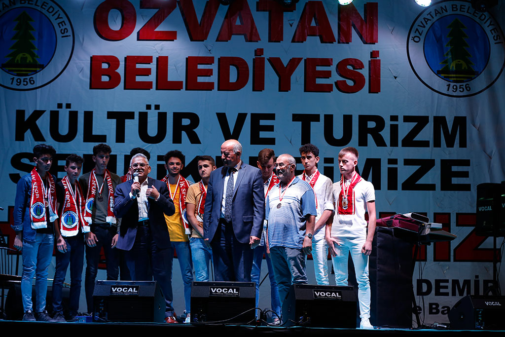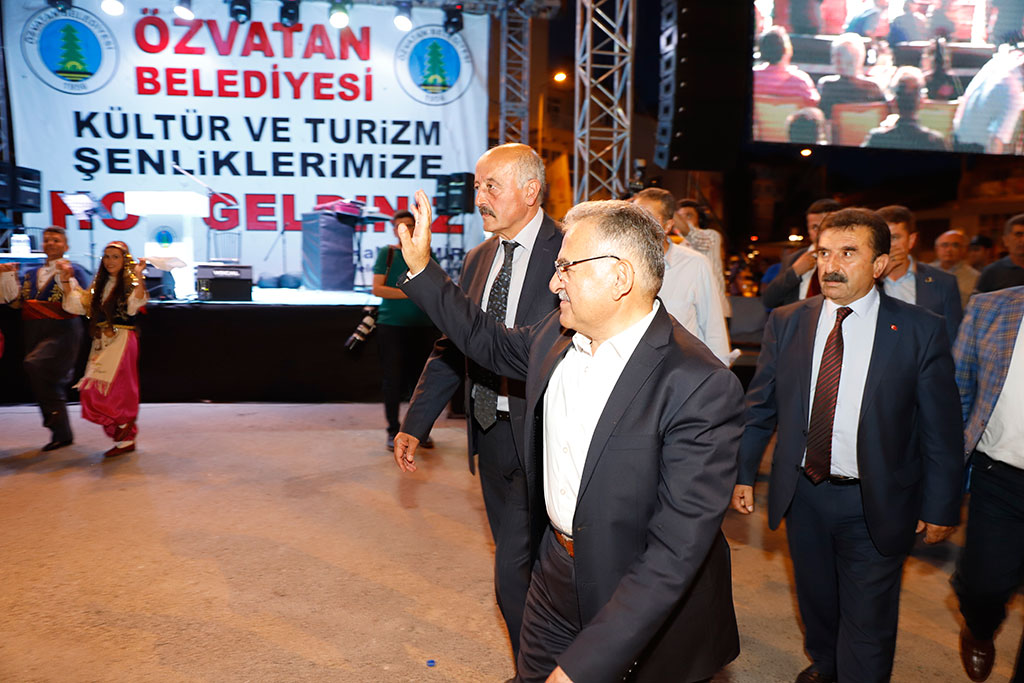 Kayseri Büyükşehir Belediye Başkanı Dr. Memduh Büyükkılıç, Özvatan ilçesinde düzenlenen Geleneksel Kültür, Turizm ve Bal Festivali’ne katıldı. Festivalde yaptığı konuşmada Özvatan’ın da aralarında bulunduğu 6 ilçeyle ilgili bir açıklama yapan Başkan Büyükkılıç, 6 ilçenin doğal gazla buluşacağını belirtti. Özvatan Belediyesi tarafından düzenlenen 4. Geleneksel Kültür, Turizm ve Bal Festivali’ne Büyükşehir Belediye Başkanı Dr. Memduh Büyükkılıç’ın yanı sıra MHP Kayseri Milletvekili İsmail Özdemir, Talas Belediye Başkanı Mustafa Yalçın, Özvatan Belediye Başkanı Halit Demir, Sarıoğlan Belediye Başkanı Bekir Ayyıldırım, bürokratlar ve çok sayıda vatandaş katıldı. Festivalde konuşan Özvatan Belediye Başkanı Halit Demir, Başkan Memduh Büyükkılıç’ın samimiyetine vurgu yaparak “Memduh Büyükkılıç Başkanımıza hiçbir ayrım yapmaksızın ve bir farklılık gözetmeksizin ilçemize yaptıkları tüm katkılardan dolayı teşekkür ediyorum” dedi. Büyükşehir Belediye Başkanı Büyükkılıç, festivalde Özge isimli öğrencinin okuduğu Bayrak şiirini kürsüde dinledi. Şiiri çok beğenen Başkan Büyükkılıç, “Böyle nesiller olduğu sürece Türk Milletinin sırtı yere gelmez” dedi. Konuşmasında birlik beraberlik vurgusu yapan Başkan Memduh Büyükkılıç, “Birliğin, beraberliğin sembolü olmuş Özvatan’da tek vatan, tek millet, tek devlet, tek bayrak anlayışı içinde bir araya gelen vatandaşlarımıza teşekkür ediyorum. Kardeşliğin ve dayanışmanın en güzel sembolünü sergiliyorsunuz. Biz de birlik beraberlik ve dayanışma içinde Özvatan ilçemize en güzel çalışmaları yapacağız” diye konuştu. Başkan Memduh Büyükkılıç, Felahiye, Özvatan, Sarıoğlan, Akkışla, Pınarbaşı ve Sarız’ın bu dönemde doğal gazla buluşacağı müjdesini de verdi.