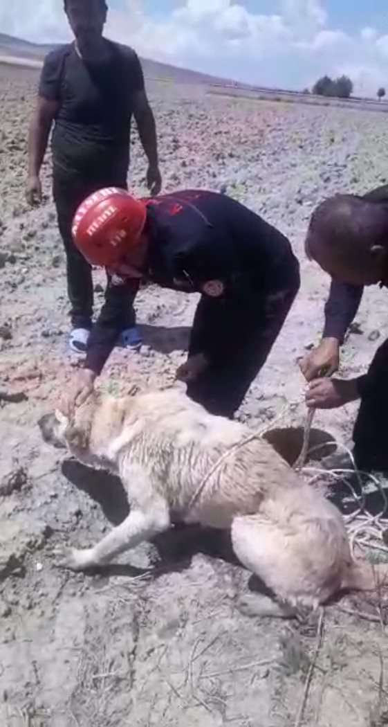ekipleri, Felahiye ilçesinde 7 metrelik bir kuyuya düşen köpeği kurtardı.