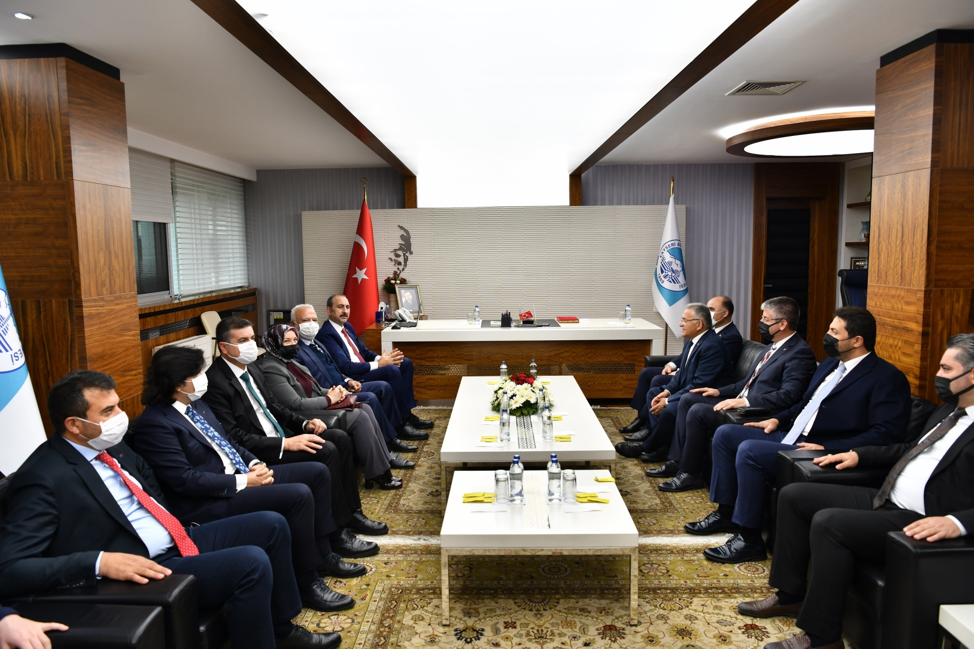 Başkanı Dr. Memduh Büyükkılıç’ı makamında ziyaret etti. Başkanlık girişinde
