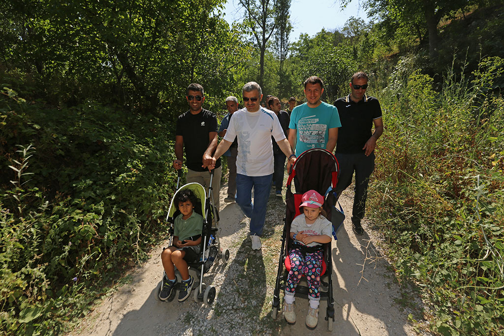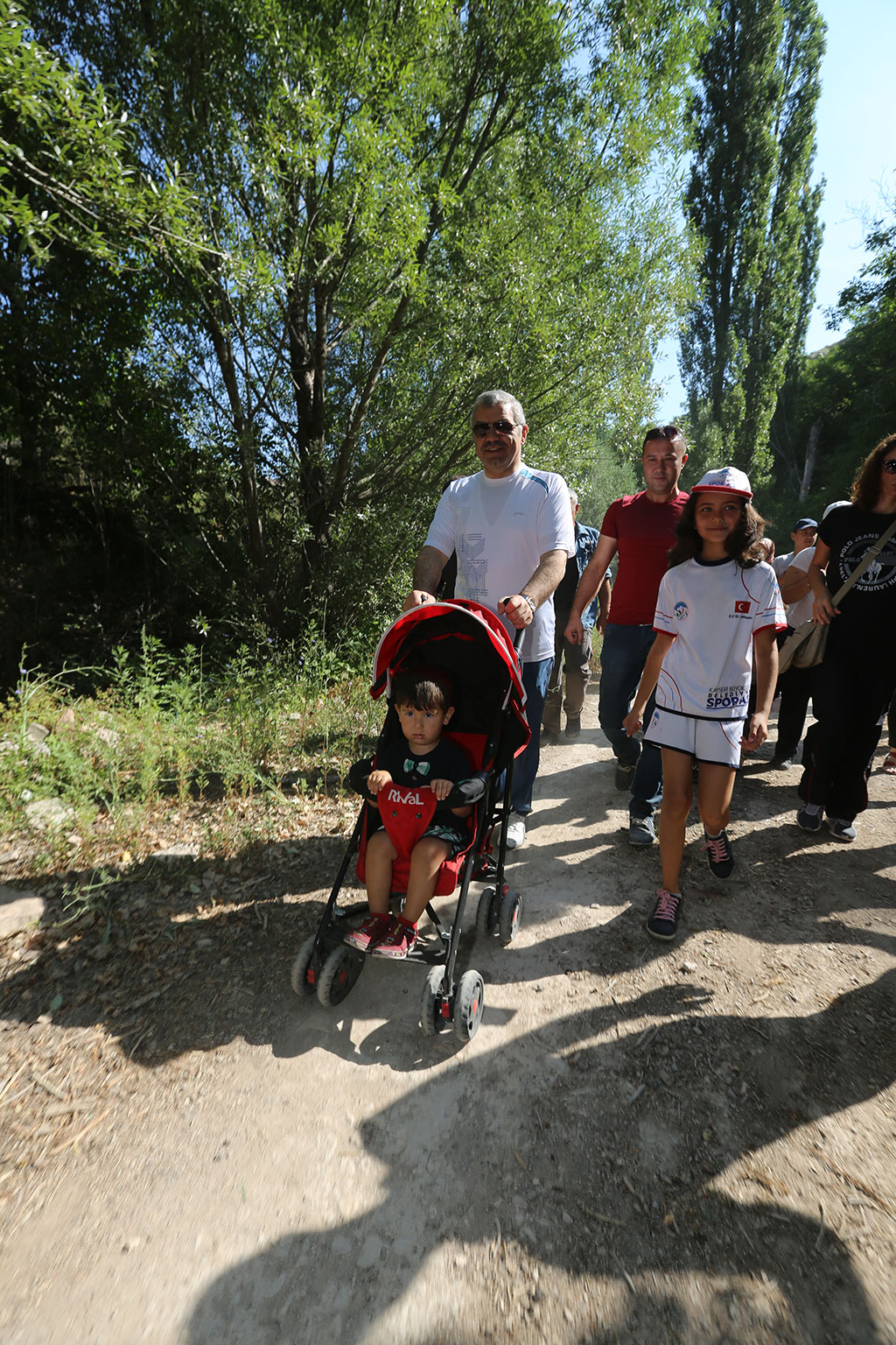 Büyükşehir Belediyesi Spor A.Ş. sağlıklı yaşam yürüyüşlerini bu hafta Ağırnas-Bağpınar’da gerçekleştirdi. Yürüyüşe Büyükşehir Belediye Başkanı Mustafa Çelik de katıldı. Başkan Mustafa Çelik, ailelerin tüm fertleriyle iştirak ettiği bu tür organizasyonların devam edeceğini söyledi. Büyükşehir Belediyesi Spor A.Ş.’nin Ağırnas-Bağpınar’daki doğa yürüyüşüne yaklaşık 3 bin kişi katıldı. 6 kilometrelik parkurda yapılan doğa yürüyüşünde Büyükşehir Belediye Başkanı Mustafa Çelik de halkla birlikteydi. Bağpınar’ın muhteşem doğal ortamında gerçekleştirilen yürüyüş boyunca vatandaşlarla sohbet eden Başkan Çelik, “Ailelerin bir arada katılımını sağlayan bu tür etkinliklerle tüm hemşehrilerimizi şehrimizin doğal güzellikleriyle buluşturuyoruz. Pusetteki bebekten yaşlılara kadar herkes yürüyüşümüze katılıyor. Ulaşım imkanı olmayan hemşehrilerimizi de şehrin farklı bölgelerinden servislerle etkinlik alanına taşıyoruz ve katılımlarını sağlıyoruz” dedi. Hafta içindeki iş temposundan yorulan insanların stres atma ihtiyacı hissettiğini ve bu etkinliklerin bu imkanı sağladığını dile getiren Başkan Çelik, “Böyle güzel organizasyonlar yapınca karşılığını görüyorsunuz. Bu yıl Spor A.Ş.’nin etkinlikleriyle 300 bin kişiye ulaşıldı. Bu derecede geniş kitlelere ulaşan etkinlikler hiçbir şehirde yok. Bir taraftan kitle sporları yapıyoruz, bir taraftan da bireysel sporlarda dereceler elde ediyoruz. Daha dün bir okçumuz Almanya’da yapılan müsabakada dünya şampiyonu oldu. En kolay dünya ve olimpiyat şampiyonu çıkaracağımız branşın okçuluk olduğunu defalarca söylemiştim. Sporcularımız bu sözümün ne kadar gerçekçi olduğunu gösteriyorlar” diye konuştu. Yürüyüş boyunca vatandaşlarda Büyükşehir Belediyesi’nin çok güzel organizasyonlar yaptığını belirterek Başkan Çelik’e teşekkür ettiler. Yürüyüşe katılanlar arasında Mersin’den Kayseri’ye gelen ve kendi illerinde bu tür etkinliklerin olmadığını ifade eden vatandaşlar da vardı. Yürüyüş sonrası Başkan Mustafa Çelik, katılanlara kahvaltılık kumanya dağıttı. Başkan Çelik ayrıca güzergahtaki bir evi ziyaret ederek ev sakinleriyle sohbet etti. Başkan Çelik’e kolonya ve çikolata ikram edildi. Yürüyüşün ardından etkinlik alanında özellikle çocuklar için spor ve oyun alanları kuruldu. Çocuklar, şişme basketbol, tırmanma duvarı, penaltı şov, waterball, engelleri bulunan parkurlar ve okçuluk gibi etkinlik alanlarında doyasıya eğlendiler. Başkan Mustafa Çelik de etkinlik alanını gezerek çocuklarla yakından ilgilendi. Büyükşehir Belediyesi Spor A.Ş. Genel Müdürü Hüseyin İşlertaş, doğa yürüyüşüne 3 bin kişinin katıldığını belirterek, bu tür etkinliklerde her türlü güvenlik tedbirini aldıklarını ve katılımcıların tüm ihtiyaçlarını karşıladıklarını söyledi.