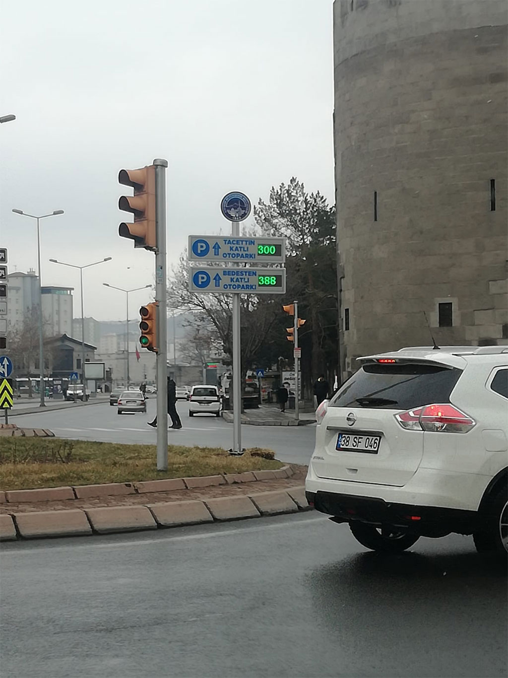 Kayseri Büyükşehir Belediyesi Ulaşım A.Ş. tarafından geliştirilen ve otoparklar hakkında yönlendirme ve bilgilendirme hizmeti veren “Akıllı Tabelalar” şehrin 11 noktasına yerleştirildi. Katlı otoparkların doluluk oranlarını gösteren akıllı yönlendirme tabelaları sayesinde sürücüler park hizmetlerine kolayca ulaşma ve doluluk bilgisini takip etme imkânına sahip oluyor. Büyükşehir Belediyesi Akıllı Şehircilik projelerine Akıllı Tabelaları da ekledi. Akıllı ulaşım sisteminin kent içi uygulamaları kapsamında birçok projenin bünyelerindeki ARGE Müdürlüğü tarafından gerçekleştirildiğini ifade eden Kayseri Ulaşım A.Ş. Genel Müdürü Feyzullah Gündoğdu, ulaşımın bir parçası olan otopark hizmetlerine yenilikçi çözümler sunarak vatandaşların otoparklara kolay ve hızlı ulaşmasını amaçladıklarını söyledi. Otoparkların daha kolay ve yaygın kullanılmasını sağlamak için Ulaşım A.Ş.’nin ARGE Müdürlüğü tarafından Değişken Mesaj Sistemi (DMS) tabelalarının geliştirildiğini ve şehrin birçok bölgesine yerleştirildiğini dile getiren Gündoğdu, “Bu sayede bir yandan yol kenarı usulsüz parklanmaların önüne geçeceğiz, diğer yandan da vatandaşlarımıza katlı otoparkların doluluk oranları ile en yakın boş otoparkın bilgisini sunmuş olacağız” dedi. Kayseri Ulaşım A.Ş. tarafından geliştirilen akıllı tabelalar, cadde ve kavşakların yanı sıra açık otoparkların girişlerinde de bulunuyor.