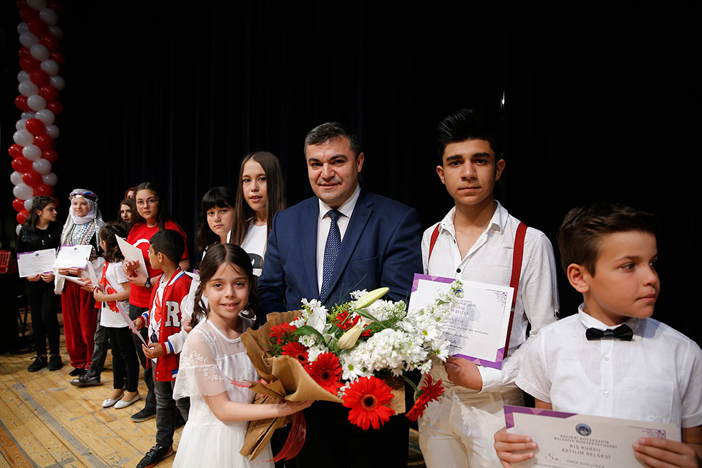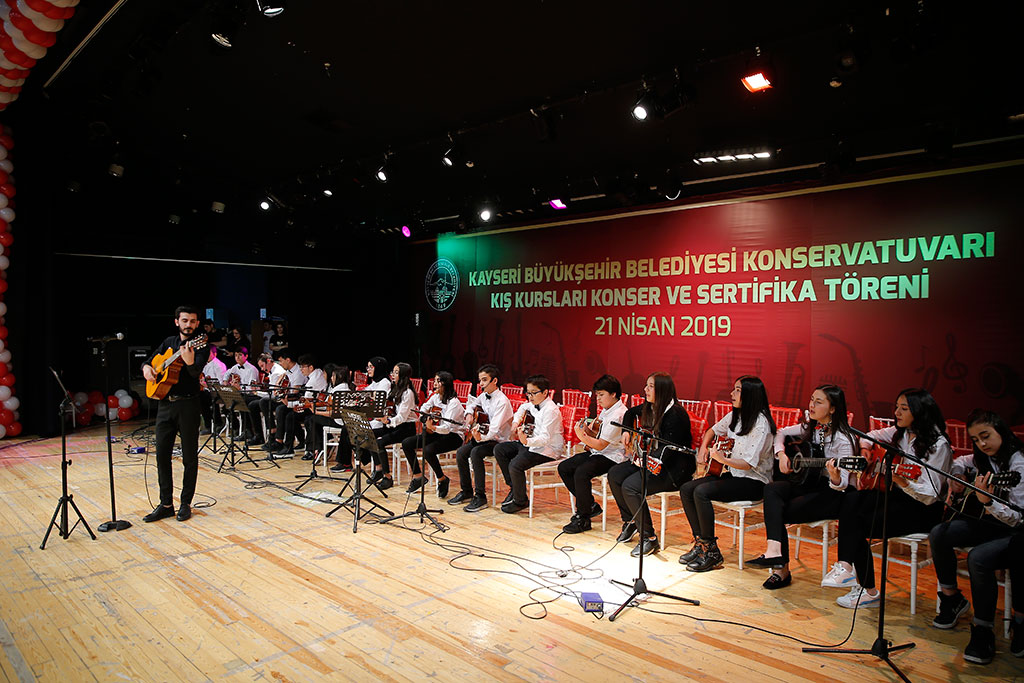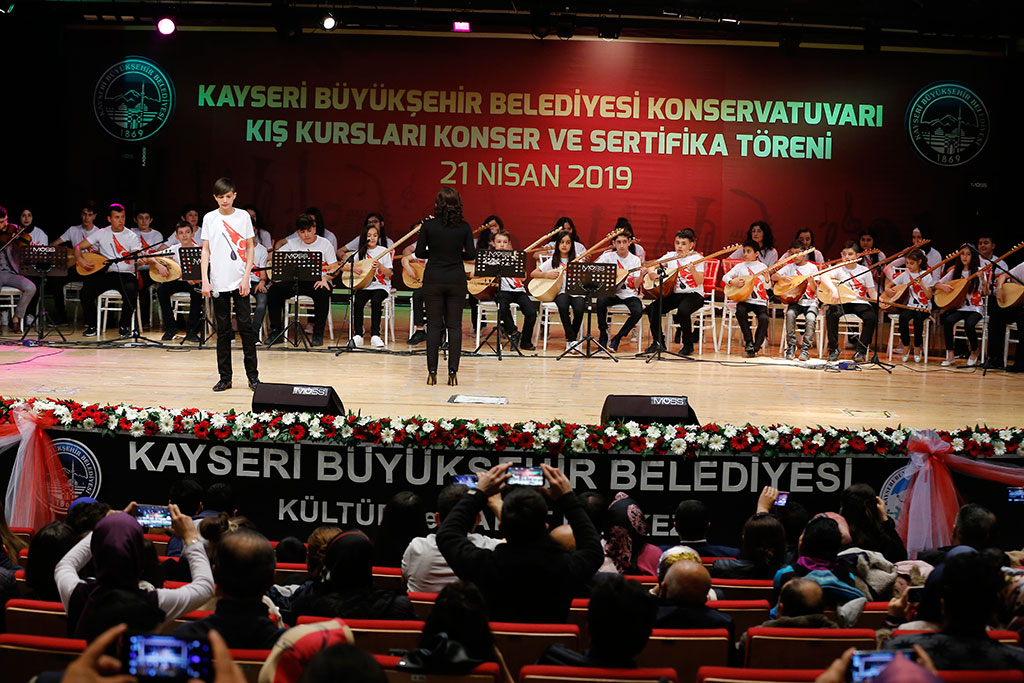 Kayseri Büyükşehir Belediyesi, Anadolu’nun en büyük sanat okulunda sanatçı adayları yetiştirmeye devam ediyor. Büyükşehir Belediyesi Konservatuvarı’nın kış dönemindeki kurslarına katılan 9-15 yaş grubundaki öğrenciler için sertifika töreni yapıldı. Büyükşehir Belediyesi Konservatuvarı tarafından kış dönemindeki hafta sonu kurslarıyla 8 branşta 9-15 yaş grubundaki 1200 öğrenciye ders verildi. Farklı sanat dallarında kendilerini yetiştiren gençler için Büyükşehir Belediyesi Kültür Sanat Merkezi’nde sertifika töreni yapıldı. Törene öğrenciler ve aileleri büyük ilgi gösterdi. “YILDA 10 BİN KİŞİ EĞİTİM ALIYOR” Büyükşehir Belediyesi Genel Sekreter Yardımcısı Serdar Öztürk, konservatuvarın yaz ve kış döneminde merkez ve Setenönü şubesiyle toplam 10 bin kişiye hizmet verdiğini söyledi. Kış döneminde yetişkinlerle birlikte 5 bin 500 kişinin kurs aldığını ifade eden Öztürk, kış dönemi hafta sonu kurslarına katılan 1200 öğrenciye sertifika verileceğini belirtti. İyi yetişmiş gençlerin şehrimizin ve ülkemizin kalkınmasına katkı vereceklerini dile getiren Serdar Öztürk, “Derslerinden zaman ayırarak kendilerini sosyal anlamda da geliştiren tüm gençlerimizi yapacağımız etkinliklerde her zaman aramızda görmek istiyoruz. Bu vesileyle tüm çocuklarımızın 23 Nisan Ulusal Egemenlik ve Çocuk Bayramı’nı kutluyorum. Büyükşehir Belediye Başkanımız Sayın Dr. Memduh Büyükkılıç’a bizlere verdiği destekler için şükranlarımı sunuyor, özveriyle çalışan tüm eğitimcilerimize teşekkür ediyorum” dedi. Daha sonra farklı branşlarda kendilerini yetiştiren 1200 öğrenciye sertifikaları verildi. Sertifikalarını alan öğrenciler tiyatro, halk oyunları ve konserlerle kış dönemi boyunca öğrendiklerini ailelerine ve Kayseri kamuoyuna gösterme şansı buldular.