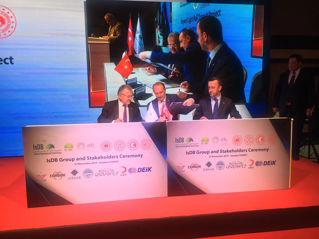 Kayseri Büyükşehir Belediye Başkanı Dr. Memduh Büyükkılıç, İstanbul’da yapılan İslam İşbirliği Teşkilatı’nın toplantısına katıldı ve Cumhurbaşkanımız Recep Tayyip Erdoğan’ın da katılımıyla gerçekleştirilen toplantıda Talas-Anayurt Raylı Sistem Hattı için İslam Kalkınma Bankası ile anlaşma imzalandı. Başkan Büyükkılıç, ihale sürecini tamamlayarak en kısa sürede Talas-Anayurt Hattı’nın yapımına başlayacaklarını söyledi. Büyükşehir Belediye Başkanı Dr. Memduh Büyükkılıç, İstanbul’da yapılan İslam İşbirliği Teşkilatı Ekonomik ve Ticari İşbirliği Daimi Komitesi'nin 35. oturumunda İslam Kalkınma Bankası ile ülkemizdeki farklı projeler için gerçekleştirilen imza törenine katıldı. Cumhurbaşkanı Recep Tayyip Erdoğan’ın da açılışına katıldığı toplantıda imzalanan anlaşmalar kapsamında Talas-Anayurt raylı sistem hattı da yer aldı. İslam Kalkınma Bankası ve İller Bankası arasında imzalanan anlaşma kapsamında Talas-Anayurt Raylı Sistem Hattı için 30 milyon avro kredi sağlandı. “KISA SÜREDE YAPIM AŞAMASINA GEÇECEĞİZ” Büyükşehir Belediye Başkanı Dr. Memduh Büyükkılıç, İslam Kalkınma Bankası ile anlaşmanın imzalanmasıyla birlikte Talas Anayurt-Aşık Veysel Bulvarı Hattı’nın kredisi için tüm işlemlerin tamamlandığını belirtti. 5,8 kilometrelik hattın yapımı için ihale sürecini kısa sürede tamamlayacaklarını ifade eden Başkan Büyükkılıç, hattın yapımına en kısa sürede başlanacağını kaydetti.
