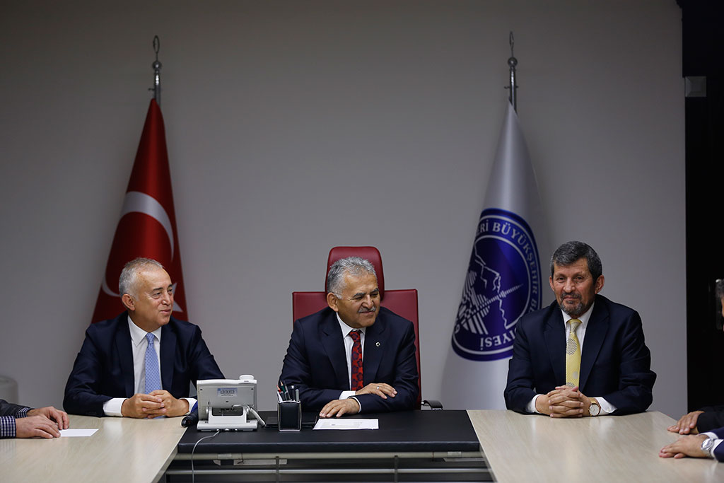 Kayseri Amatör Spor Kulüpleri Federasyonu (ASKF) Genel Başkanı Musa Soykarcı ve yönetim kurulu üyeleri Büyükşehir Belediye Başkanı Dr. Memduh Büyükkılıç’ı ziyaret etti. Ziyarette Başkan Büyükkılıç, her alanda olumlu yönde Kayseri’den söz ettirmenin önemini vurgulayarak, temel ilkemizin bu olması gerektiğini belirtti. Büyükşehir Belediye Başkanı Memduh Büyükkılıç’a yeni görevinde başarılar dileyen Amatör Spor Kulüpleri Federasyonu Genel Başkanı Musa Soykarcı, Başkan Büyükkılıç’ın gönül adamı olduğunu söyledi. Başkan Büyükkılıç’ın amatör spora önemli katkılar sağlayacağına inancını dile getiren Soykarcı, “Siz gönül adamısınız. Hangi kapıyı açsak oradasınız ve halkın içindesiniz. Yan yana, can canasınız. Belediyecilikteki tecrübelerinizle, gerek şehrimize, gerek amatör spor kulüplerimize büyük katkılar sağlayacağınıza inancımız tamdır” diye konuştu. Büyükşehir Belediye Başkanı Memduh Büyükkılıç da Kayseri’de birlik, bütünlük anlayışı içerisinde olacaklarını belirtti. Amatör spora malzeme desteğinin yanında, okullara da malzeme desteği projeleri olduğunu ifade eden Başkan Büyükkılıç, bu projeyi kısmen hayata geçireceklerini dile getirdi. İnternet bağımlılığı konusuna da değinen Başkan Büyükkılıç, “Teknoloji bağımlılığı, en çok üzerinde durulması gereken konu. Teknolojinin bize hükmettiği değil, bizim teknolojiye hükmettiğimiz bir bilinç oluşturmalıyız” dedi.