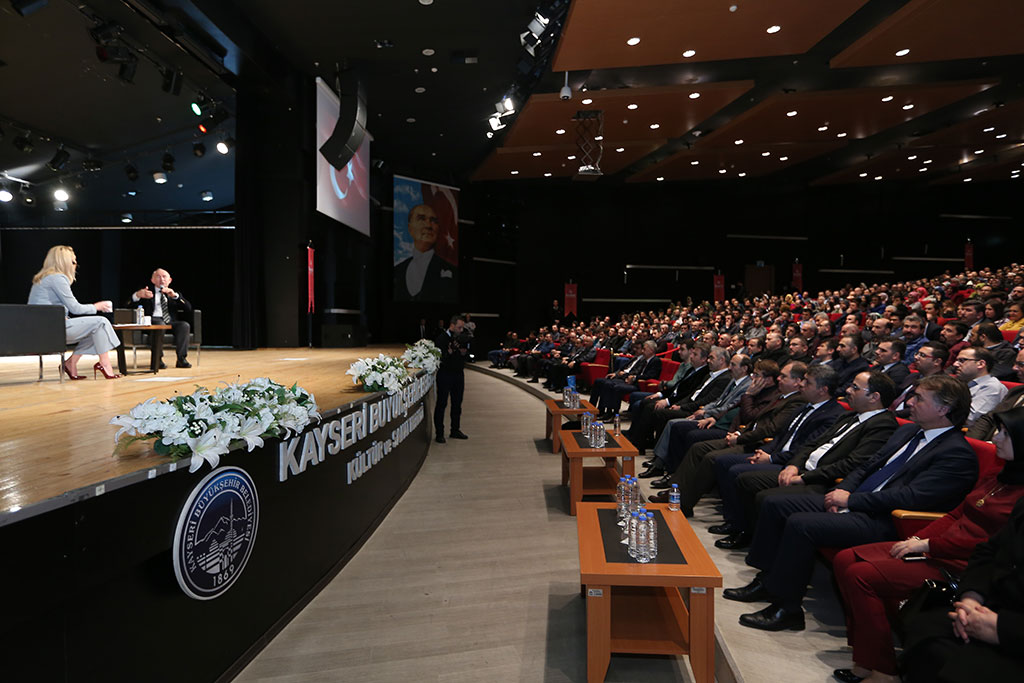 Büyükşehir Belediyesi bünyesindeki KAYMEK tarafından düzenlenen “Asrın İhaneti Fetö” programı Kadir Has Kültür ve Sanat Merkezi’nde yapıldı. Büyükşehir Belediye Başkanı Mustafa Çelik’in de takip ettiği programda önemli noktalara vurgu yapıldı. “Asrın İhaneti Fetö” programına Prof. Dr. Ahmet Şimşirgil ile Cansu Canan Özgen katıldı. Büyükşehir Belediye Başkanı Mustafa Çelik’in de takip ettiği programa büyük ilgi gösterildi. Salonun tamamen doldurulduğu programa tarihten bu yana yaşadığımız hainliklerden bahsederek başlayan Prof. Dr. Ahmet Şimşirgil, hainliğin başkaları tarafından kullanılmayla gerçekleştiğini dile getirdi ve dışarının oyuncağı olanın hain olduğunu söyledi. Fetö olayının bir başka terörist başı Apo ile bağlantılı olduğunu ifade eden Prof. Dr. Şimşirgil, “Apo’yu verdiler Fetö’yü aldılar. Apo da Fetö de bu ülkenin yok edilme planıydı” dedi. Fetö’nün başlangıcından itibaren yabancılar tarafından kullanıldığını ifade eden Prof. Dr. Ahmet Şimşirgil, Fetö’nün “Ilımlı İslam”, “Dinler arası diyalog” söylemlerinin bunun bir kanıtı olduğunu belirtti. Şimşirgil, “Radikal İslam da ılımlı İslam da İslam değildir. İslam İslam’dır. İslam, şu İslam bu İslam olarak ayrılmaz. Suudi Arabistan’ı bir günde ılımlı İslam yaptılar. Bizde başarılı olamadılar, Fetö ile başarmak istedikleri görevi Suudi Arabistan’a verdiler. Bir günde radikal İslam’dan nasıl ılımlı İslam’a dönüldü?” diye konuştu.
