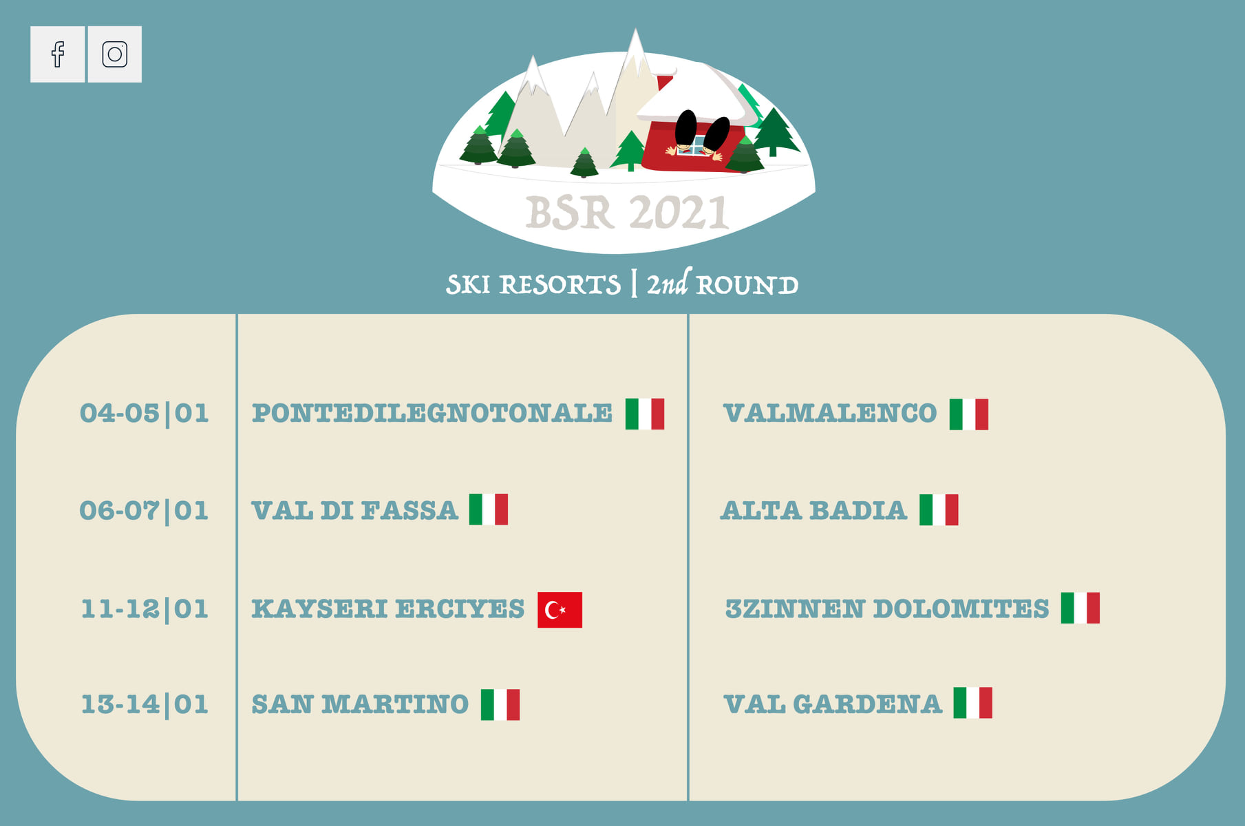İtalya’daki diğer bir kayak merkezi olan Zinnen Dolomites ile 11 ve 12 Ocak’ta