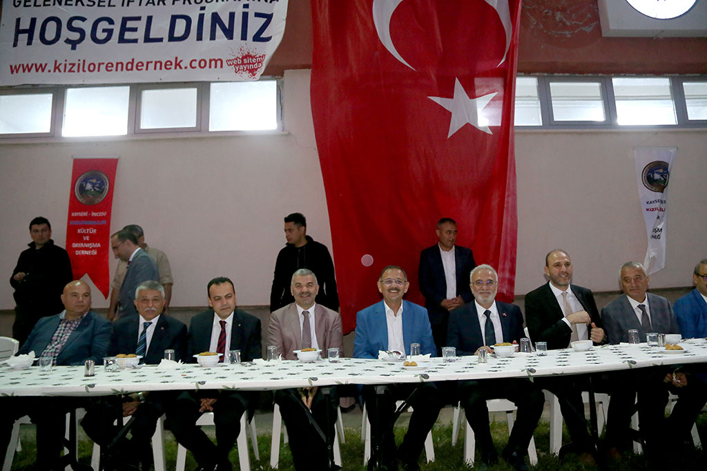Büyükşehir Belediye Başkanı Mustafa Çelik, Çevre ve Şehircilik Bakanı Mehmet Özhaseki ile birlikte İncesu’da açılış töreni ve iftar programına katıldı. Hayırsever Uçurum ailesi tarafından yapılan sosyal tesisin açılışını gerçekleştiren Bakan Özhaseki ve Başkan Çelik, iftarı da Kızılören’de yaptılar. İncesu’nun Çardaklı Mahallesi’ne yapılan Hüseyin Keziban Uçurum Sosyal Tesisleri’nin açılışına Çevre ve Şehircilik Bakanı Mehmet Özhaseki ve Büyükşehir Belediye Başkanı Mustafa Çelik’in yanı sıra AK Parti İl Başkanı Fatih Hasyüncü, İncesu Belediye Başkanı Zekeriya Karayol, Hayırsever Uçurum ailesi ve vatandaşlar katıldı. “EN BÜYÜK DEĞERİMİZİ İNSAN GÜCÜMÜZ” Büyükşehir Belediye Başkanı Çelik, Uçurum ailesinin Adana Hacı Sabancı Organize Sanayi Bölgesi'nde İstanbul'daki Sultan Ahmet Camii’nden esinlenerek yaptırdıkları camiyi hatırlatarak, İsrafil Uçurum ve ailesinin Adana’da Kayserililiklerini hissettirdiklerini söyledi. Başkan Çelik, Kayseri’nin en büyük değerinin müteşebbis, hayırsever insan gücü olduğunu vurguladı ve bununla şehir olarak övündüğümüzü kaydetti. Çevre ve Şehircilik Bakanı Mehmet Özhaseki de, bir insanın kazandığı paranın haram mı helal mi olduğunu anlamak için harcadığı yere bakmak gerektiğini söyledi. Kayseri’de hayırseverliğin çok önemli bir özellik olduğunu ifade eden Bakan Özhaseki, şehirdeki eğitim ve sağlık tesislerinin çoğunda hayırseverlerin isminin bulunduğuna dikkat çekti. Bakan Özhaseki ve Başkan Çelik, Hüseyin Keziban Uçurum Sosyal Tesisleri’nin açılışının ardından Kızılörenliler Kültür ve Dayanışma Derneği tarafından düzenlenen geleneksel iftara katıldılar. İftara AK Parti Grup Başkan Vekili ve Kayseri Milletvekili Mustafa Elitaş da iştirak etti.