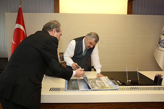 Diyanet İşleri Başkanlığı yanındaki Ahmet Hamdi Akseki Camii’nin mimarı olan Salim Alp’in bugüne kadar yaptığı projeleri gören Başkan Çelik, Mimar Salim Alp’ten Kayseri ile ilgili düşüncelerini aldı. Başkan Mustafa Çelik, “Ülkemizde önemli eserler ortaya koymuş olan mimarlarımızın Kayseri’ye verebilecekleri katkı konusunda fikirlerini alıyoruz” dedi.