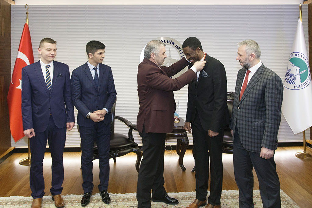 Gesi Ahmet Poyraz Kuran Kursu’nda öğrenim gören ve üç ay gibi kısa sürede hafız olmayı başaran öğrenciler İl Müftüsü Şahin Güven ile birlikte Büyükşehir Belediye Başkanı Mustafa Çelik’i ziyaret etti. Başkan Çelik, başarılı öğrencilerden Kuran-ı Kerim dinledi ve öğrencilerin bu başarısını altınla ödüllendirdi. İl Müftüsü Şahin Güven Gesi Ahmet Poyraz Kuran Kursu öğrencilerinin teşvik edilmesi ve başka öğrencilere de örnek olması için elde ettikleri başarıyı duyurmak istediklerini; ancak Büyükşehir Belediye Başkanı Mustafa Çelik’in öğrencilerin başarısını daha önce öğrenerek davet ettiğini belirtti ve bu ilgiden dolayı teşekkür etti. Büyükşehir Belediye Başkanı Mustafa Çelik de üç ayda hafız olma başarısını gösteren gençleri tebrik etti. Gençliğin önemini de vurgulayan Başkan Çelik, “Gençlerimiz inandığımız kitabımızı kısa sürede hissederek hafız olmuşlar. Marifet iltifata tabiidir. Çocuklarımızı taltif ederek teşvik etmek istedik. Rabbim bu gençlerimizi eksik etmesin. Bunlar olacak ki Kuran’ımız, ezanımız dinmeyecek. Bu konuda gayret eden hocalarımıza da teşekkür ediyorum” dedi. Başkan Mustafa Çelik, daha sonra üç ayda hafız olma başarısını gösteren Ganalı Öğrenci Osman İdris, Zekeriya Veziro ve Ali İhsan Özkeşkek’den Kuran-ı Kerim dinledi. Başkan Çelik, üç öğrenciyi başarılarından dolayı altınla ödüllendirdi.