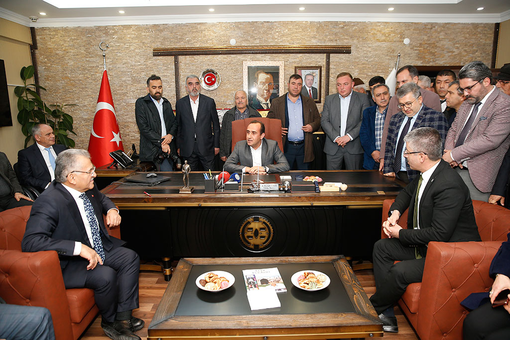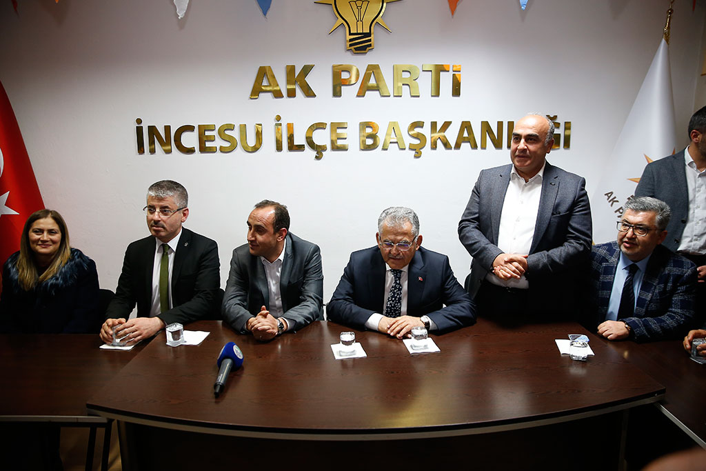 Kayseri Büyükşehir Belediye Başkanı Dr. Memduh Büyükkılıç, 16 ilçe ve Büyükşehir olmak üzere 17 belediye başkanı olarak el ele gönül gönüle hizmet ettiklerini ve birlik beraberliğin bereketini gösterdiklerini söyledi. Başkan Büyükkılıç, “Bir takım sözlere kulaklarımızı tıkayacağız ve işimize bakacağız. Başkalarına laf, bize icraat yakışır” dedi. Büyükşehir Belediye Başkanı Dr. Memduh Büyükkılıç, AK Parti’ye katılan İncesu Belediye Başkanı Mustafa İlmek’i AK Partili belediye başkanlarıyla tam kadro ziyaret etti. Ziyarete AK Parti İl Başkanı Şaban Çopuroğlu ile kadın ve gençlik kolları başkanları da katıldı. İncesu Belediye Başkanı Mustafa İlmek, ziyaretten duyduğu memnuniyeti dile getirerek, “Bizleri ziyaret ederek ve bizlere destek vererek onurlandırdınız. Hizmet anlamında hep beraber yapacak çok işimiz var. Derdimiz ve sevdamızın İncesu olduğunu herkesin bilmesini istiyoruz” dedi. AYIN 17’SİNDE SAAT 17.17’DE Ak Parti İl Başkanı Şaban Çopuroğlu da tesadüfen gelişen bir konuya değinerek Cumhur İttifakının Kayseri’de 17 belediye başkanı olduğunu belirtti ve İncesu ziyaretini ayın 17’sinde saat 17.00’ı 17 geçe yapmalarının anlamlı olduğunu söyledi. Büyükşehir Belediye Başkanı Dr. Memduh Büyükkılıç da birlik beraberliğini önemini vurgulayarak, “Cenabı Allah birliğimizi, beraberliğimizi, huzurumuzu bozmasın. Mustafa İlmek Başkan gerek seçim öncesi seviyeli çalışmalarıyla gerekse seçim sonrasındaki çalışması ve seviyeli yaklaşımıyla gönlümüzde yer etmiştir. Onu kendimizden ayrı birisi olarak görmedik. Yaşantısı, felsefesi ve ilçesine duyduğu aidiyet duygusu ile bizler gibi düşünen bir kardeşimiz. Hepimiz biriz beraberiz hep beraber İncesu’yuz” ifadelerini kullandı. Ziyarette AK Parti İl Başkanı Çopuroğlu, İncesu Belediye Başkanı İlmek’e Cumhurbaşkanı Recep Tayyip Erdoğan’ın portresini hediye etti. İLÇE BAŞKANLIĞI ZİYARET EDİLDİ Büyükşehir Belediye Başkanı Büyükkılıç, AK Parti İl Başkanı Çopuroğlu ve ilçe belediye başkanları İncesu Belediyesi’nin ardından AK Parti İncesu İlçe Başkanlığı’nı ziyaret ettiler. İlçe Başkanı İsmail Tekinsiz, İncesu Belediye Başkanı Mustafa İlmek ve meclis üyelerinin AK Parti’ye katıldığını hatırlatarak hayırlı olsun dileklerinde bulundu. Büyükşehir Belediye Başkanı Dr. Memduh Büyükkılıç da siyasi partilerin hizmet için bir araç olduğunu dile getirerek, “17 belediye başkanı olarak el ele gönül görüle vereceğiz. Birlik beraberliğimizin bereket olduğunu en güzel şekilde göstereceğiz. İnsanların hayırlısı insanlara hizmet edendir. Siyasi partiler insanlara hizmetin bir aracıdır. Bu aracı da en iyi kullanan Sayın Cumhurbaşkanımız Recep Tayyip Erdoğan ve yol arkadaşlarıdır. Bir takım sözlere kulaklarımızı tıkayacağız önümüze ve işimize bakacağız. Başkalarına laf yakışır bizlere icraat yakışır” diye konuştu. ŞEHİTLERİMİZ İÇİN FATİHA Büyükşehir Belediye Başkanı Memduh Büyükkılıç, sözlerinin sonunda üç yıl önce 17 Aralık’ta Kayseri’d