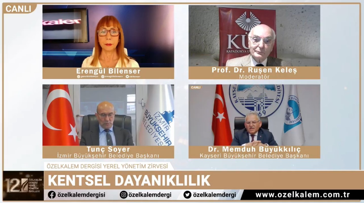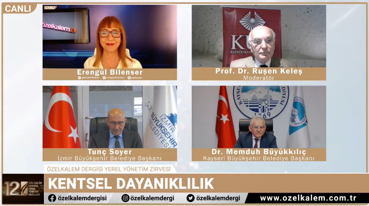 Özel Kalem Dergisi Genel Yayın Yönetmeni Erengül Bilenser’in sunuculuğunu yaptığı ve Prof. Dr. Ruşen Keleş’in moderatörlüğünde gerçekleşen oturumda, Kayseri Büyükşehir Belediye Başkanı Dr. Memduh Büyükkılıç ve İzmir Büyükşehir Belediye Başkanı Tunç Soyer’in konuk olduğu ‘Kentsel Dayanıklılık’ konusu ele alındı.