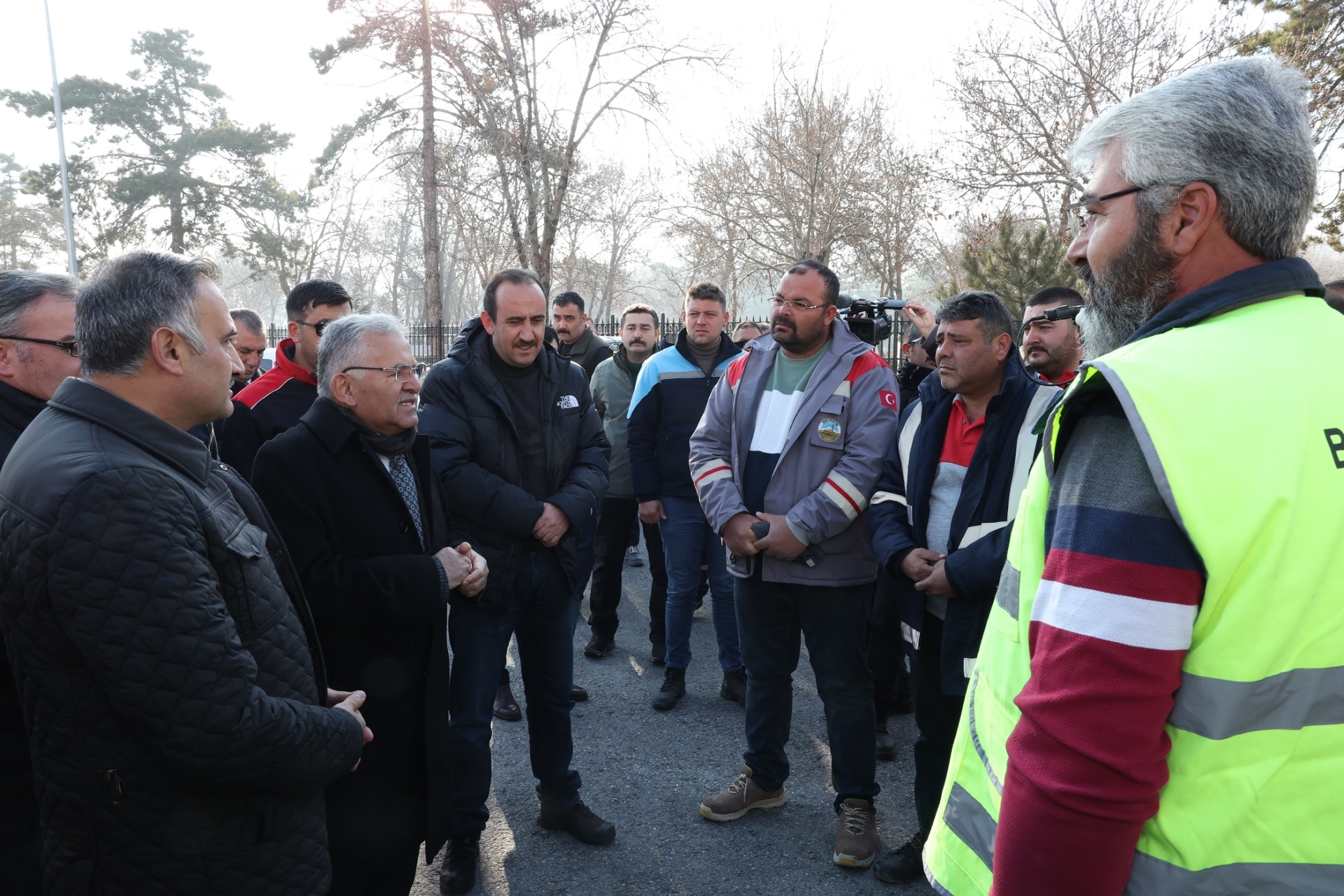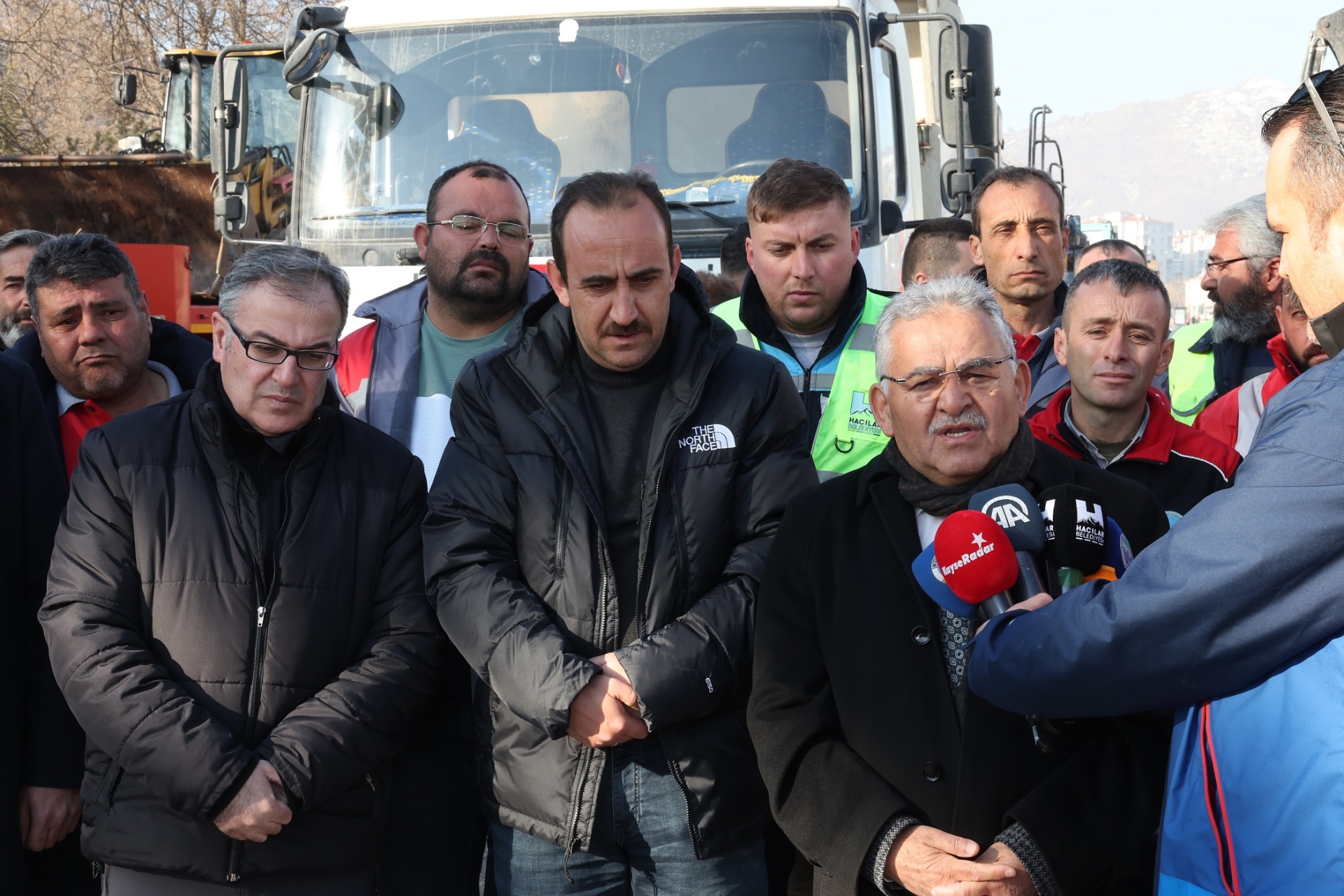 Konuşmaların ardından, Hürriyet Mahallesi Asri Mezarlık otoparkına Hacılar, Develi ve İncesu belediye ekiplerince getirilen iş makineleri, kamyon, tır, temizlik araçları ve konteyner gibi 30 araç ile 50 personel bölgeye uğurlandı.