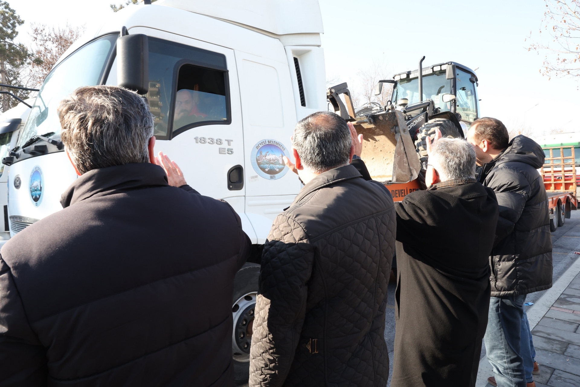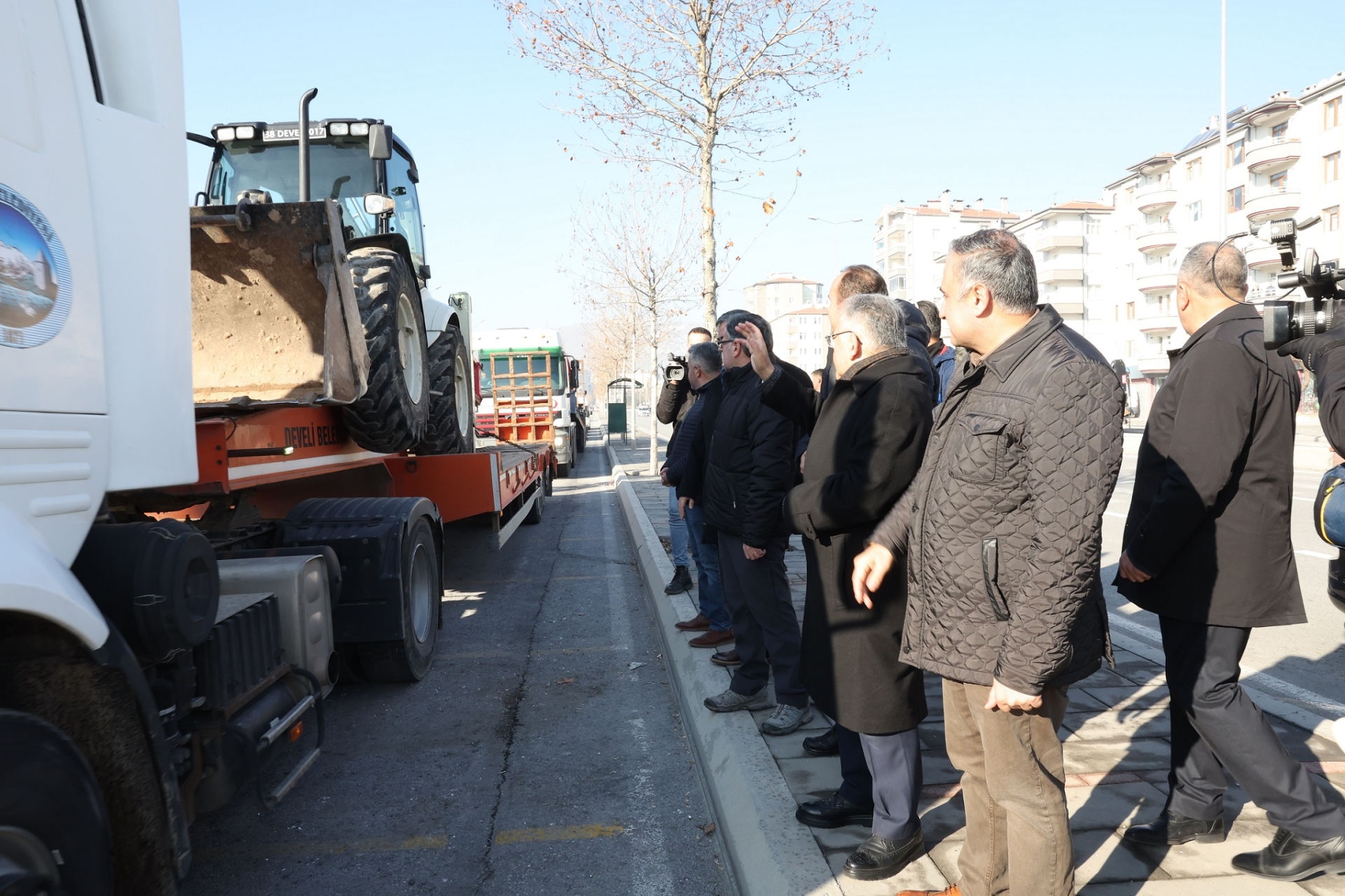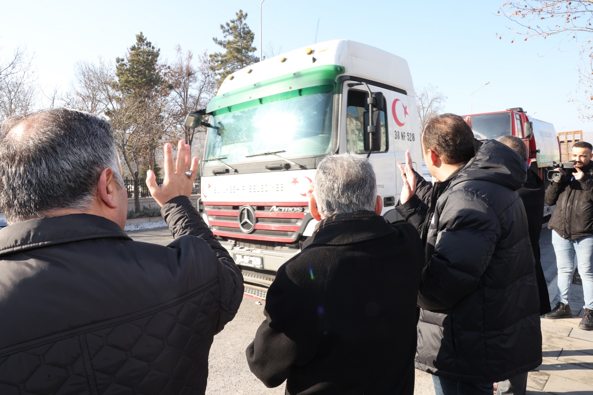 Bu kapsamda, Kayseri Büyükşehir Belediye Başkanı Dr. Memduh Büyükkılıç, Hacılar Belediye Başkanı Bilal Özdoğan, İncesu Belediye Başkanı Mustafa İlmek ve Develi Belediye Başkanı Mehmet Cabbar ile birlikte deprem bölgesi Göksun’a gönderilmek üzere yola çıkacak araçları ve personeli bölgeye uğurladı.