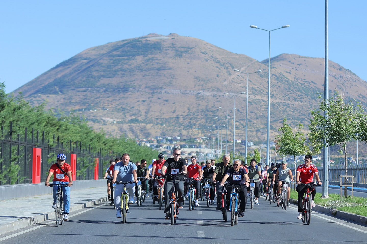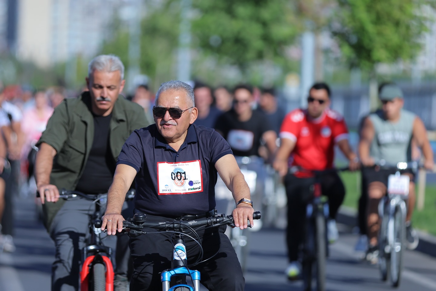 ‘Sağlık İçin Pedalla’ sloganıyla Recep Tayyip Erdoğan Millet Bahçesi’nde düzenlenen etkinliğe Başkan Büyükkılıç’ın yanı sıra Kayseri Tabip Odası Başkanı Doç. Dr. Mehmet İlhan Şahin, doktorlar, sağlık personeli ve üniversite öğrencileri katıldı.