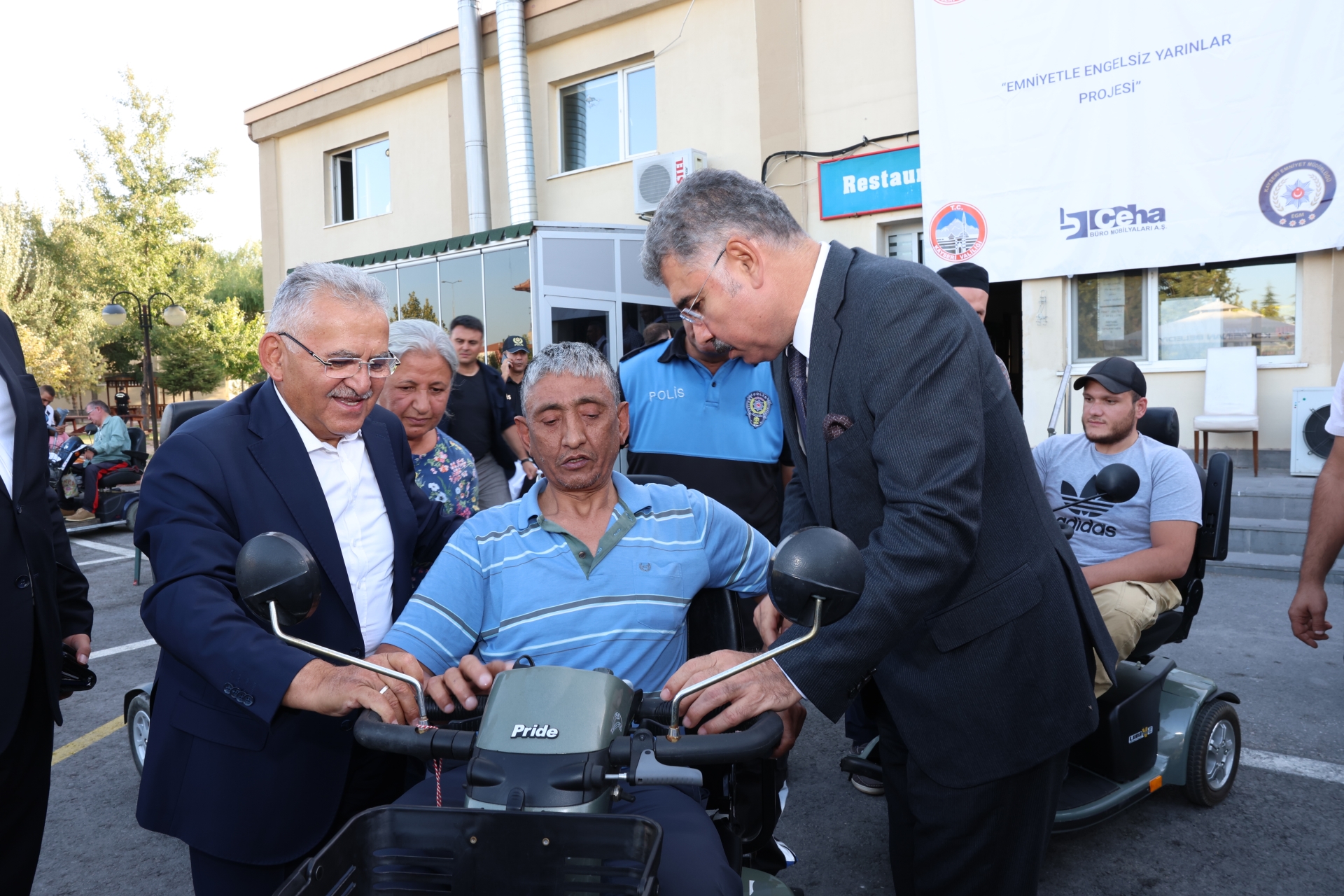 İl Emniyet Müdürlüğü bahçesindeki gerçekleştirilen akülü araç dağıtım törenine Büyükşehir Belediye Başkanı Dr. Memduh Büyükkılıç’ın yanı sıra AK Parti Genel Başkan Yardımcısı, Yerel Yönetimler Başkanı Mehmet Özhaseki, Vali Gökmen Çiçek, Kayseri Milletvekilleri Taner Yıldız, Hülya Nergis Atçı, MHP Milletvekili Baki Ersoy, İl Jandarma Komutanı Tuğg.Yüksel Yiğit, İl Emniyet Müdürü Kamil Karabörk, Hayırsever İş İnsanı Çetin Şen, il protokolü, engelli vatandaşlar ve yakınları katıldı.