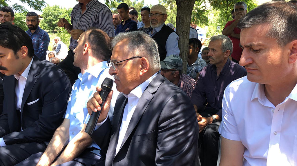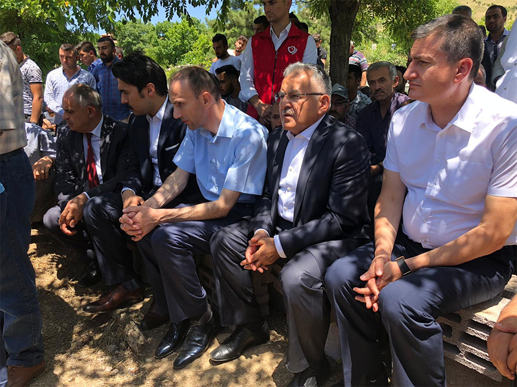 Kayseri Büyükşehir Belediye Başkanı Dr. Memduh Büyükkılıç, Develi ilçesine bağlı Küçük Künye Mahallesi’ndeki Homurlu Şelalesi’nde hayatını kaybeden 18 yaşındaki Serkan Turan Timurbuğa’nın cenazesi için Yahyalı’ya gitti. Acılı aileyi yalnız bırakmayan Başkan Büyükkılıç, cenazenin defni sırasında Kuran-ı Kerim okudu. Kayseri Büyükşehir Belediye Başkanı Dr. Memduh Büyükkılıç, üç aylık Büyükşehir Belediye Başkanlığını değerlendirdiği basın toplantısının ardından Yahyalı’ya gitti. Başkan Büyükkılıç, ailesiyle piknik için gittiği Develi’nin Küçük Künye Mahallesi’ndeki Homurlu Şelalesi’nde hayatını kaybeden 18 yaşındaki Serkan Turan Timurbuğa’nın cenazesine katıldı. Genç Serkan Yahyalı’nın Derebağ Mahallesi’ndeki Merkez Camii’nde kılınan cenaze namazının ardından toprağa verildi. Büyükşehir Belediye Başkanı Memduh Büyükkılıç da Yahyalı Belediye Başkanı Esat Öztürk ile birlikte cenaze namazına katıldıktan sonra mezarlığa geçti. Başkan Büyükkılıç, mezarlıkta Serkan Turan Timurbuğa için Kuran-ı Kerim okudu. Acılı günlerinde aileyi yalnız bırakmayan Başkan Büyükkılıç, Timurbuğa ailesi ve yakınlarına baş sağlığı ve sabır dileklerinde bulundu.