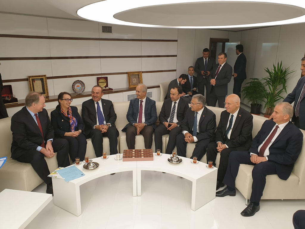 Kayseri Büyükşehir Belediye Başkanı Dr. Memduh Büyükkılıç, Avrupa Hareketlilik Haftası 2019 Yılı Kampanya Toplantısı’nda önemli temaslarda bulundu. Başkan Büyükkılıç, Dışişleri Bakanı Mevlüt Çavuşoğlu ile de görüştü. Büyükşehir Belediye Başkanı Dr. Memduh Büyükkılıç, Avrupa Hareketlilik Haftası 2019 Yılı Kampanya Toplantısı öncesinde Dışişleri Bakan Mevlüt Çavuşoğlu ile bir araya geldi. Bakan Çavuşoğlu ile bir süre görüşen Başkan Memduh Büyükkılıç, daha sonra toplantıya geçti. Toplantıya Dışişleri Bakanı Mevlüt Çavuşoğlu’nun yanı sıra Gençlik ve Spor Bakanı Dr. Mehmet Muharrem Kasapoğlu, AB Türkiye Delegasyonu Başkanı Christian Berger, Cumhurbaşkanlığı Yerel Yönetim Politika Kurulu Başkan Vekili Prof. Dr. Şükrü Karatepe, Kocasinan Belediye Başkanı Ahmet Çolakbayrakdar, Talas Belediye Başkanı Mustafa Yalçın, Hacılar Belediye Başkanı Bilal Özdoğan ve bürokratlar katıldı. Bu yılki sloganı “Birlikte yürüyelim” olan Avrupa Hareketlilik Haftası’nın kentleri sürdürülebilir ulaşım tedbirleri geliştirmeye ve desteklemeye teşvik eden ve halkı motorlu araçlara alternatif ulaşım yollarını kullanmaya davet eden önemli bir girişim olduğunu dile getiren Başkan Memduh Büyükkılıç, “Kayseri olarak biz, bu konuda önemli mesafe kat eden şehirlerden bir tanesiyiz. KAYBİS bisiklet paylaşım sistemi ile alternatif ulaşımı şehrimizin her noktasında kullanıyor ve buradaki tecrübelerimizi diğer şehirlerimizle de paylaşıyoruz. Bu manada yapılan Avrupa Hareketlilik Haftası 2019 toplantısını önemsiyor ve buradan edineceğimiz yeni tecrübeleri de şehrimize uygulayabilme noktasında değerlendirmelerde bulunuyoruz” dedi.