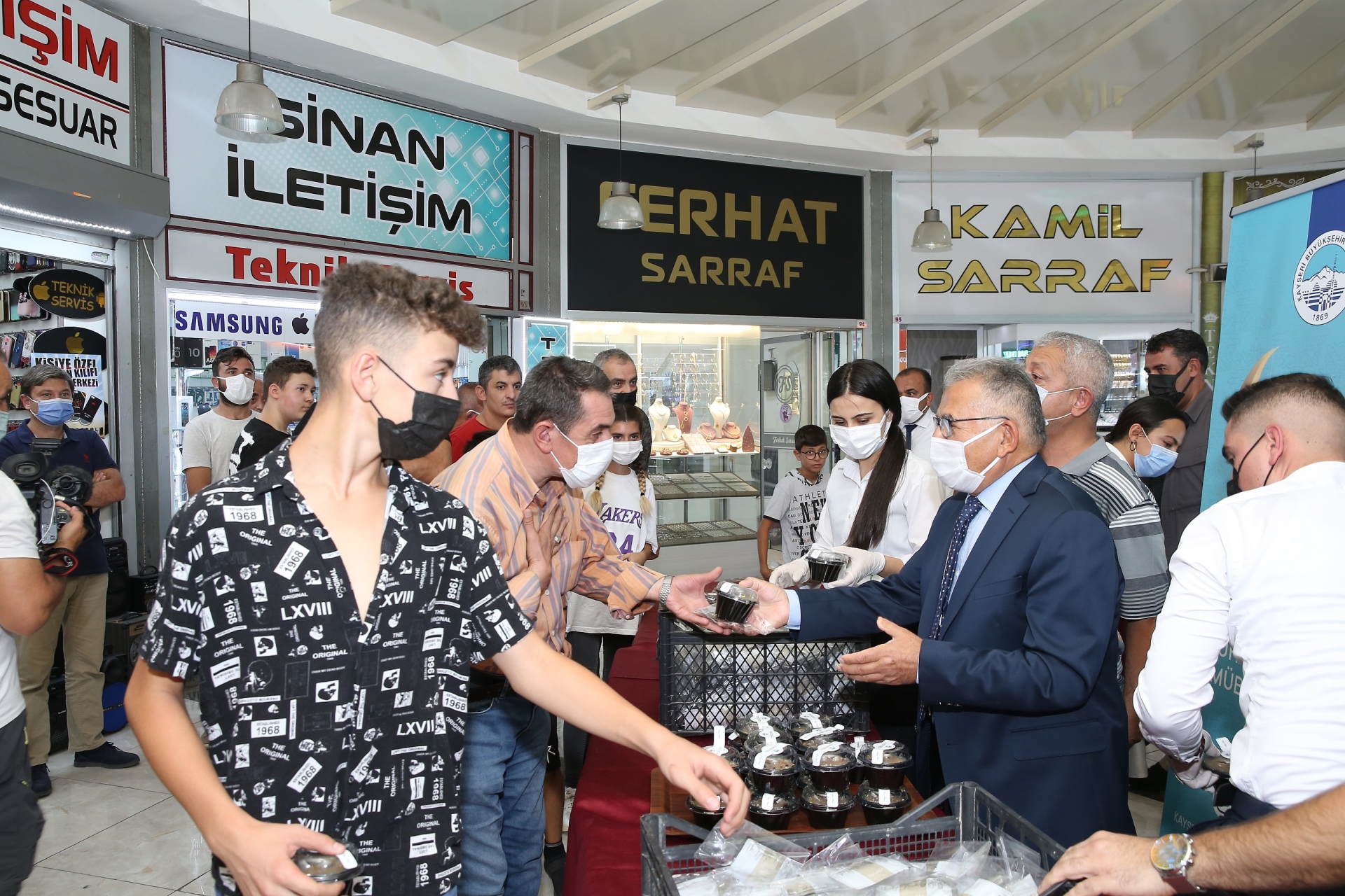 etkinlikte Başkan Büyükkılıç, vatandaşlara ve esnaflara aşure ikram etti.