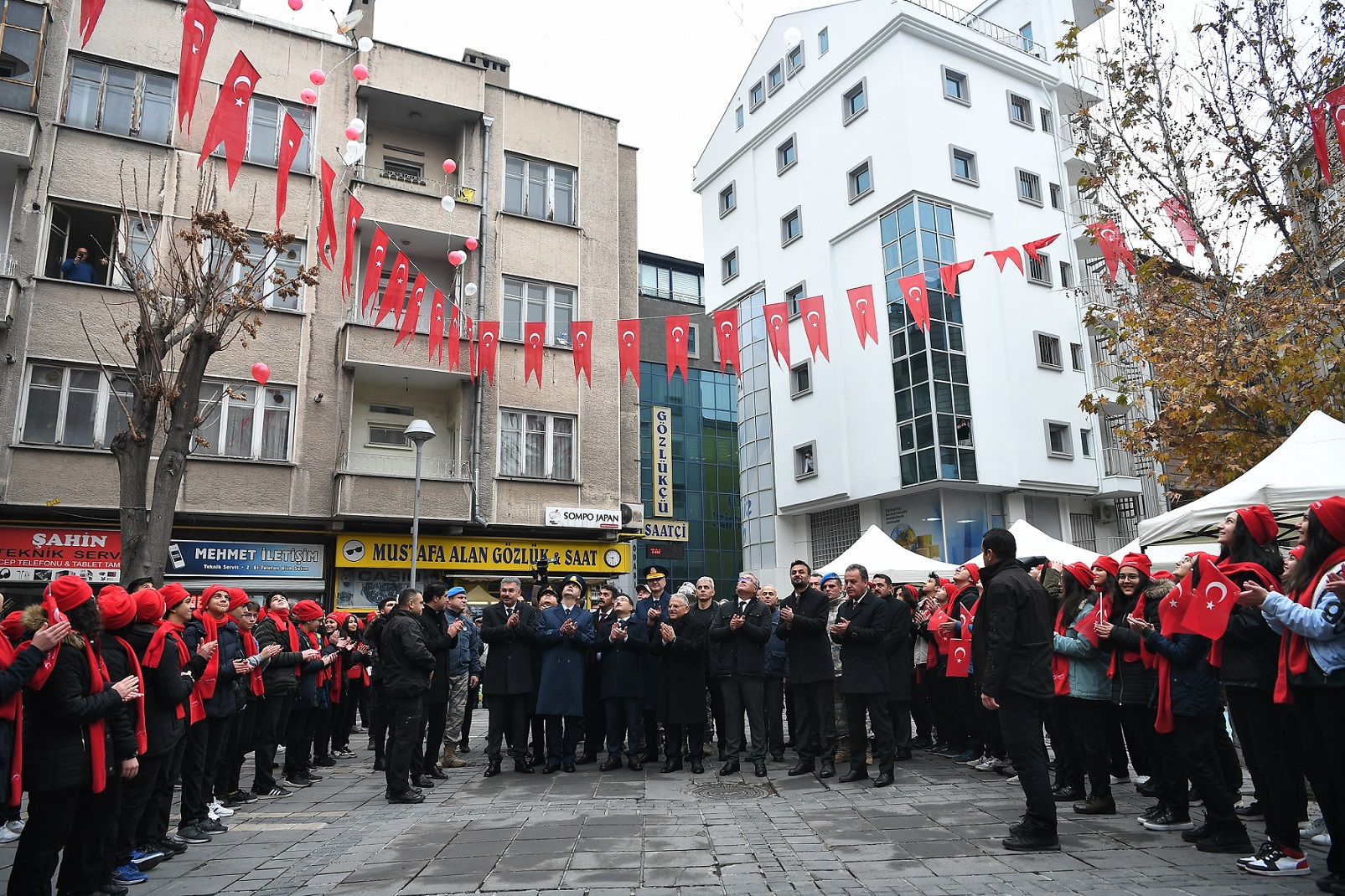 programda, öğrenciler tarafından Atatürk’ün gelişi canlandırılarak, gökyüzüne