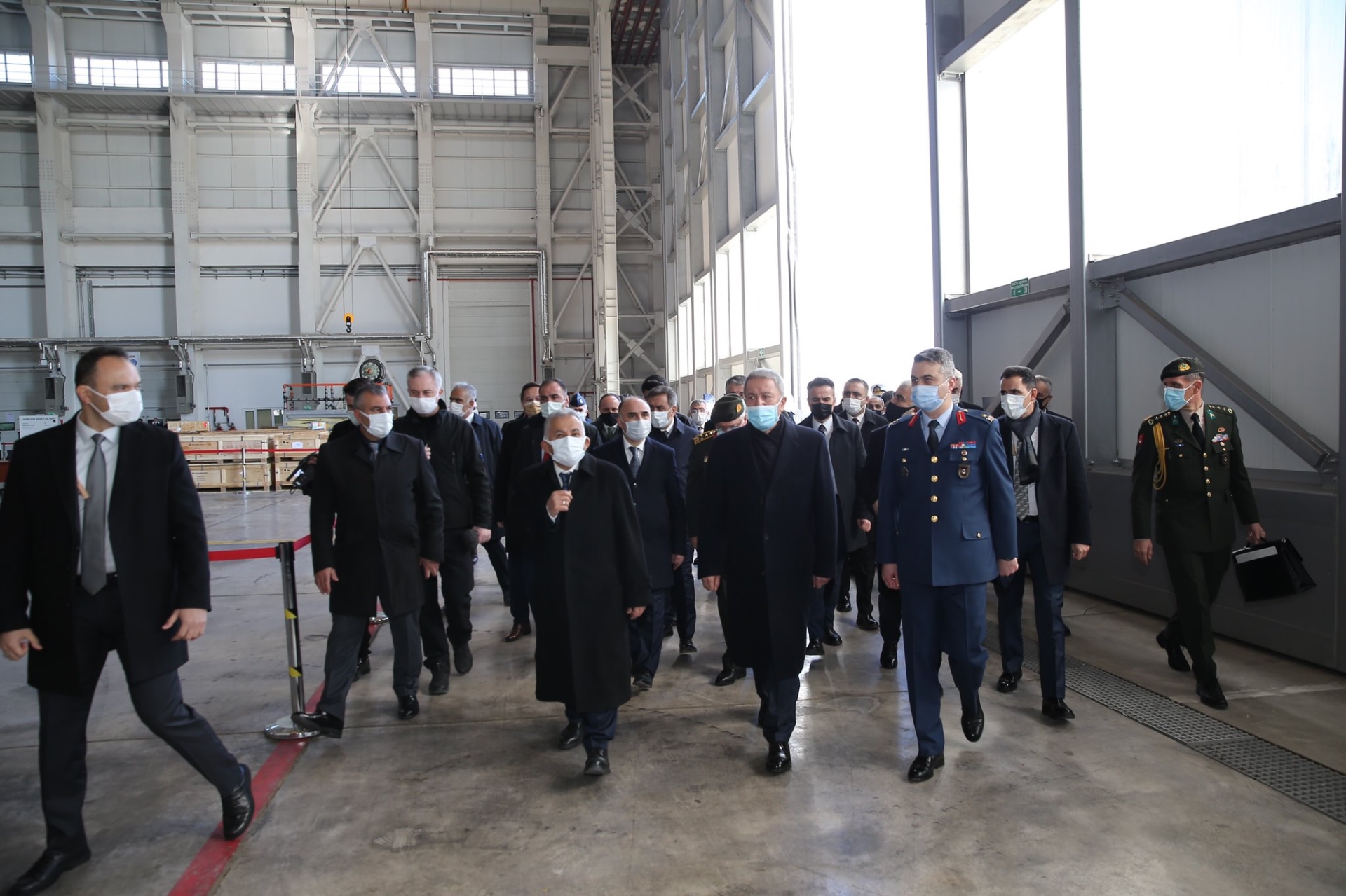 yapıldığı hangarı ziyaret ederek buradaki çalışmalar hakkında bilgi alan heyet