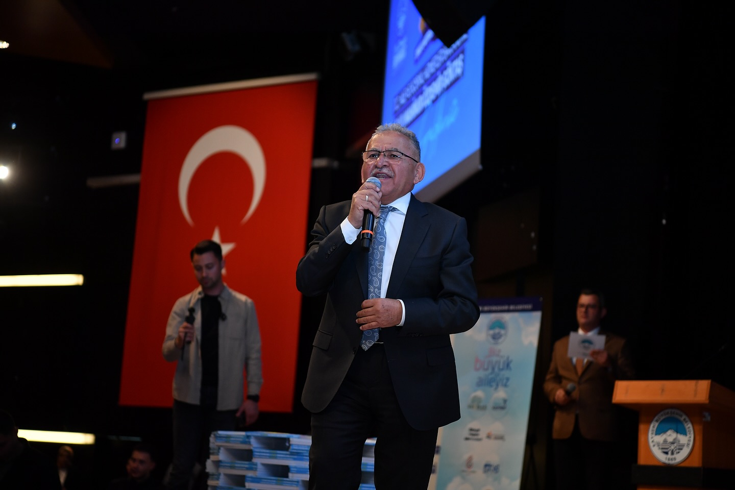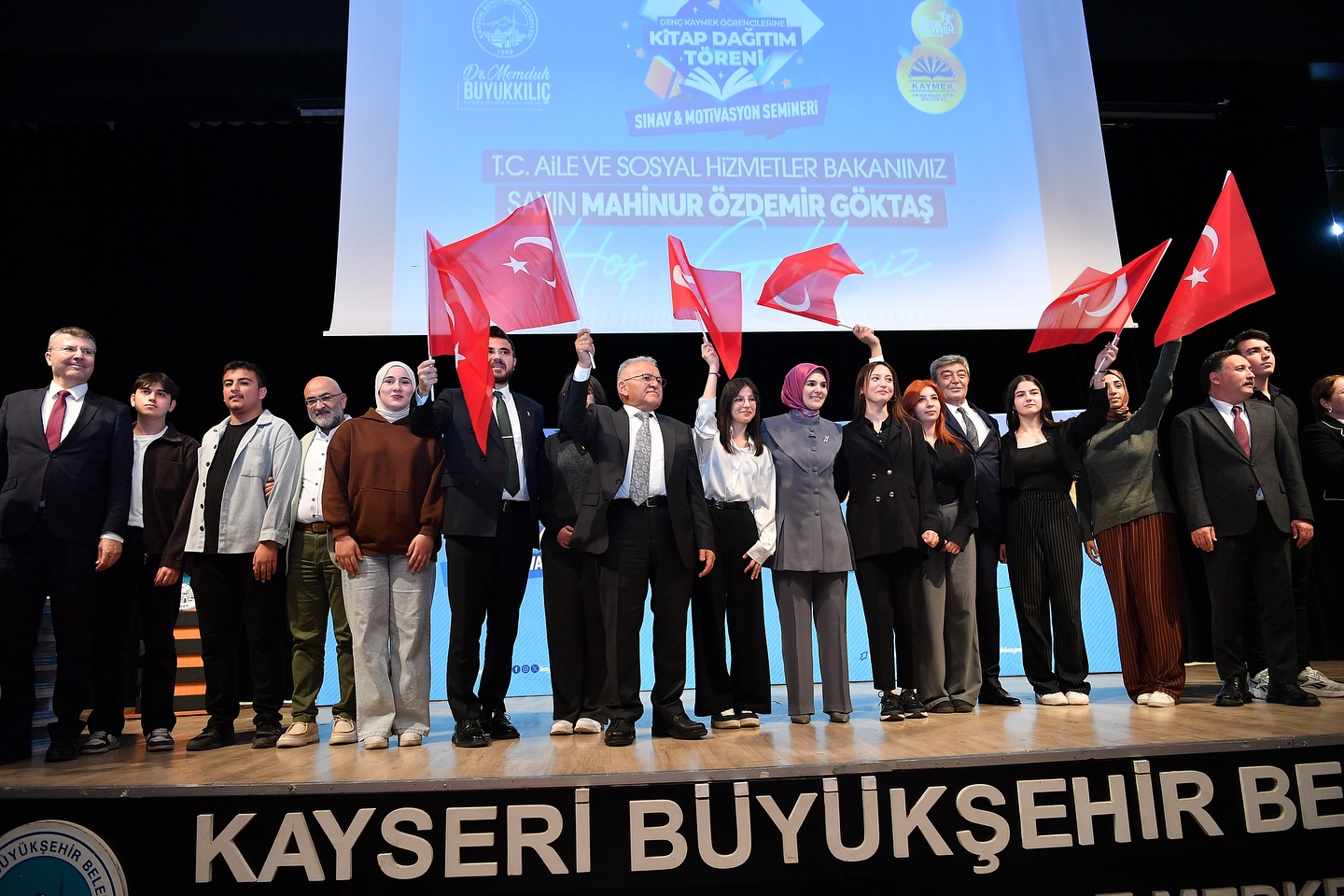 Kayseri Büyükşehir Belediye Başkanı Dr. Memduh Büyükkılıç, Aile ve Sosyal Hizmetler Bakanı Mahinur Özdemir Göktaş ile birlikte KAYMEK tarafından LGS ve YKS’ye hazırlanan öğrencilere yönelik destek amacıyla düzenlenen Kitap Dağıtım Töreni ve Sınav Motivasyon Semineri’nde öğrencilere kaynak hazırlık kitabı dağıtımı gerçekleştirdi. Öğrencilere ücretsiz şekilde kaynak kitap desteğinde bulunan öğrenci dostu Başkan Büyükkılıç, “Gençler, iyi ki varsınız. Alnınızdan öpüyorum, başarılar diliyorum“ dedi.