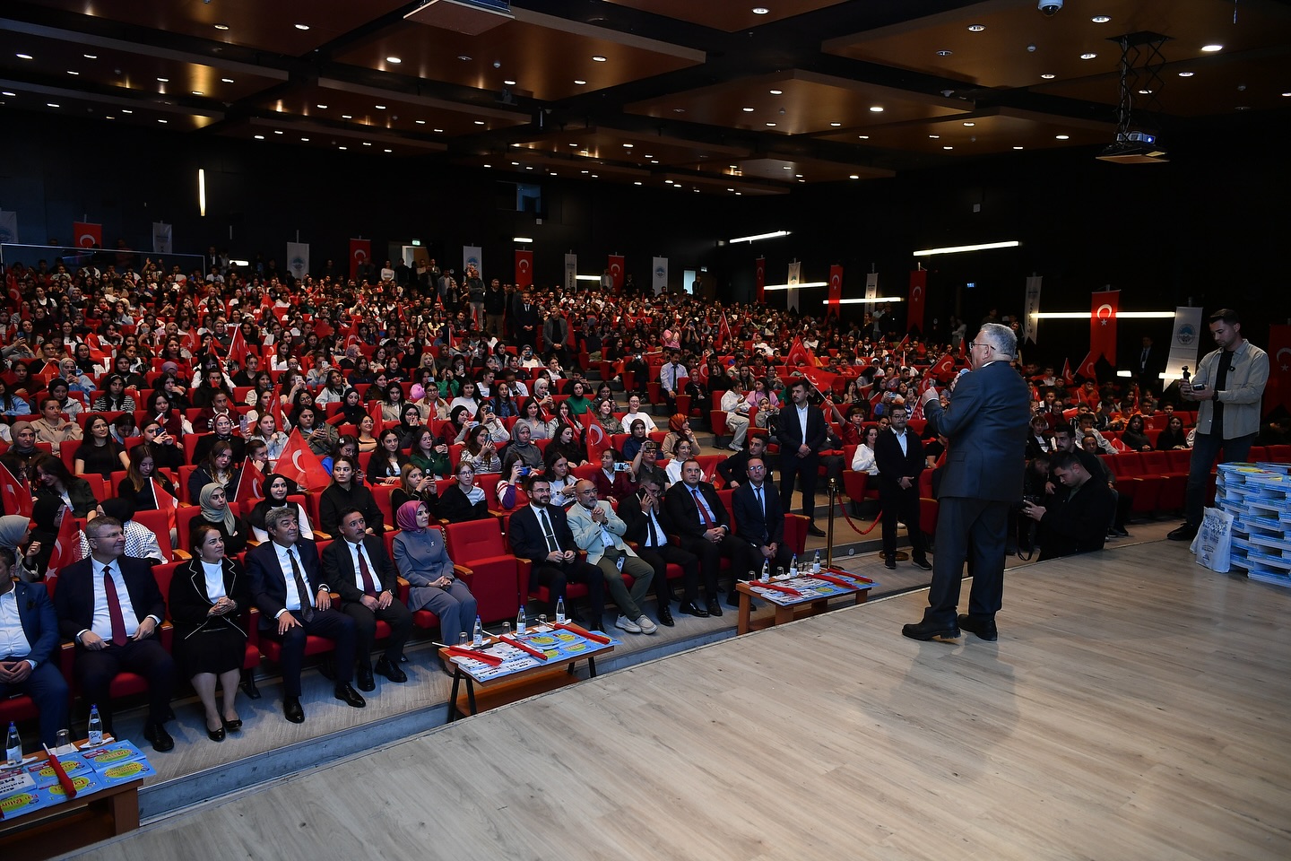 Öğrenciler Kadir Has Kültür ve Sanat Merkezi’nde Başkan Büyükkılıç, Bakan Göktaş ve protokol üyelerini Türk bayrakları ile coşkulu bir şekilde karşıladılar.