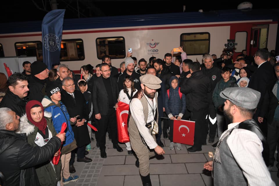 Öte yandan Kars’a giden Sarıkamış Ekspresi’nde Gençlik ve Spor Bakanı Mehmet Kasapoğlu’na şarkıcı Sinan Akçıl ve Olimpiyat Şampiyonu Milli Okçu Mete Gazoz da eşlik etti.