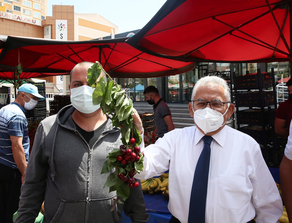hayırlı, bereketli işler dileyen Başkan Büyükkılıç, pazara gelen vatandaşlarla