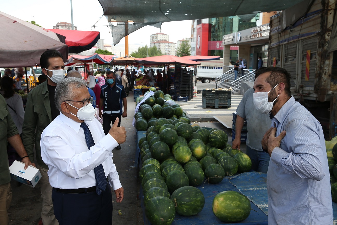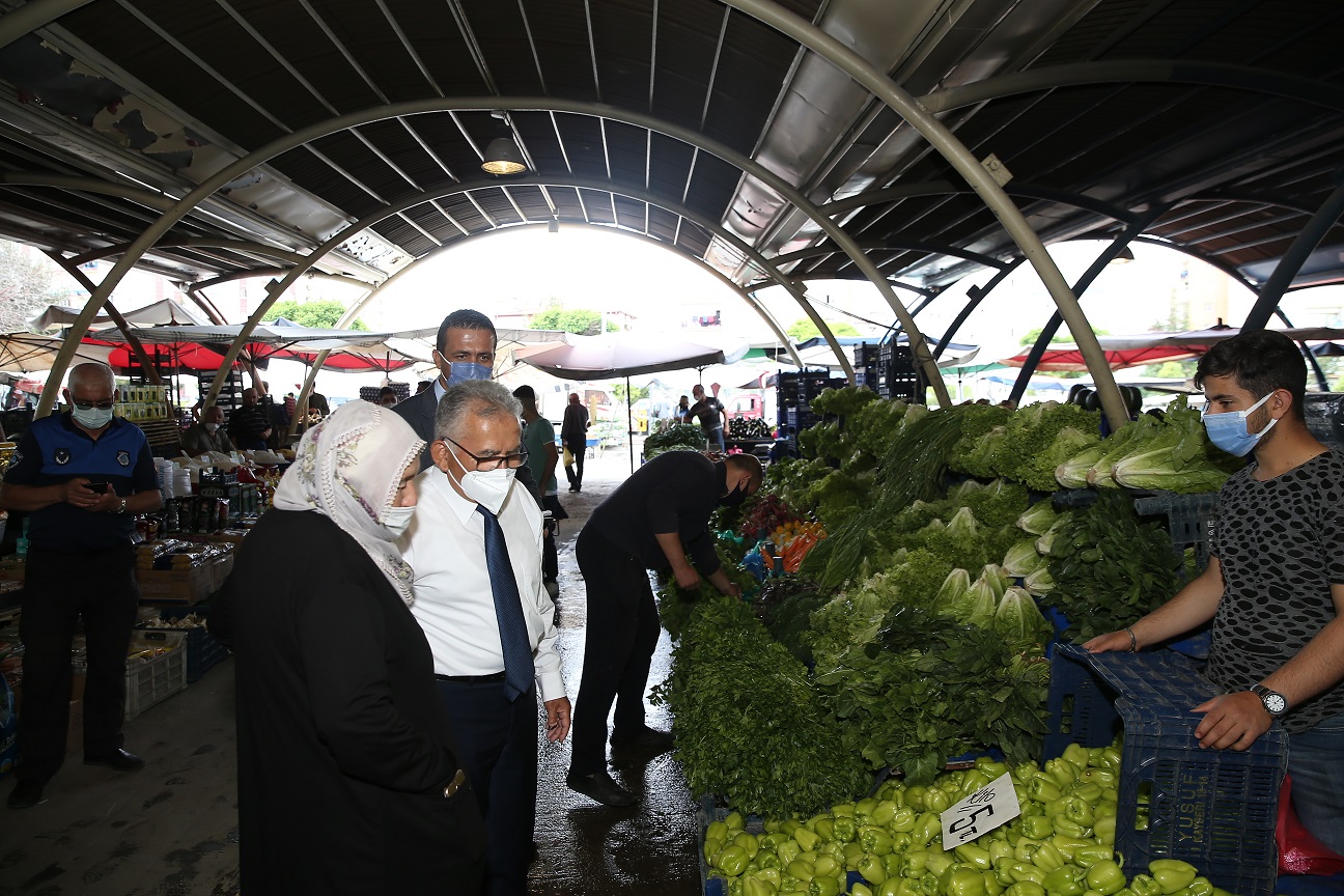 Yeri’nde esnafları ziyaret ederek, pazardaki pandemi tedbirlerini yerinde