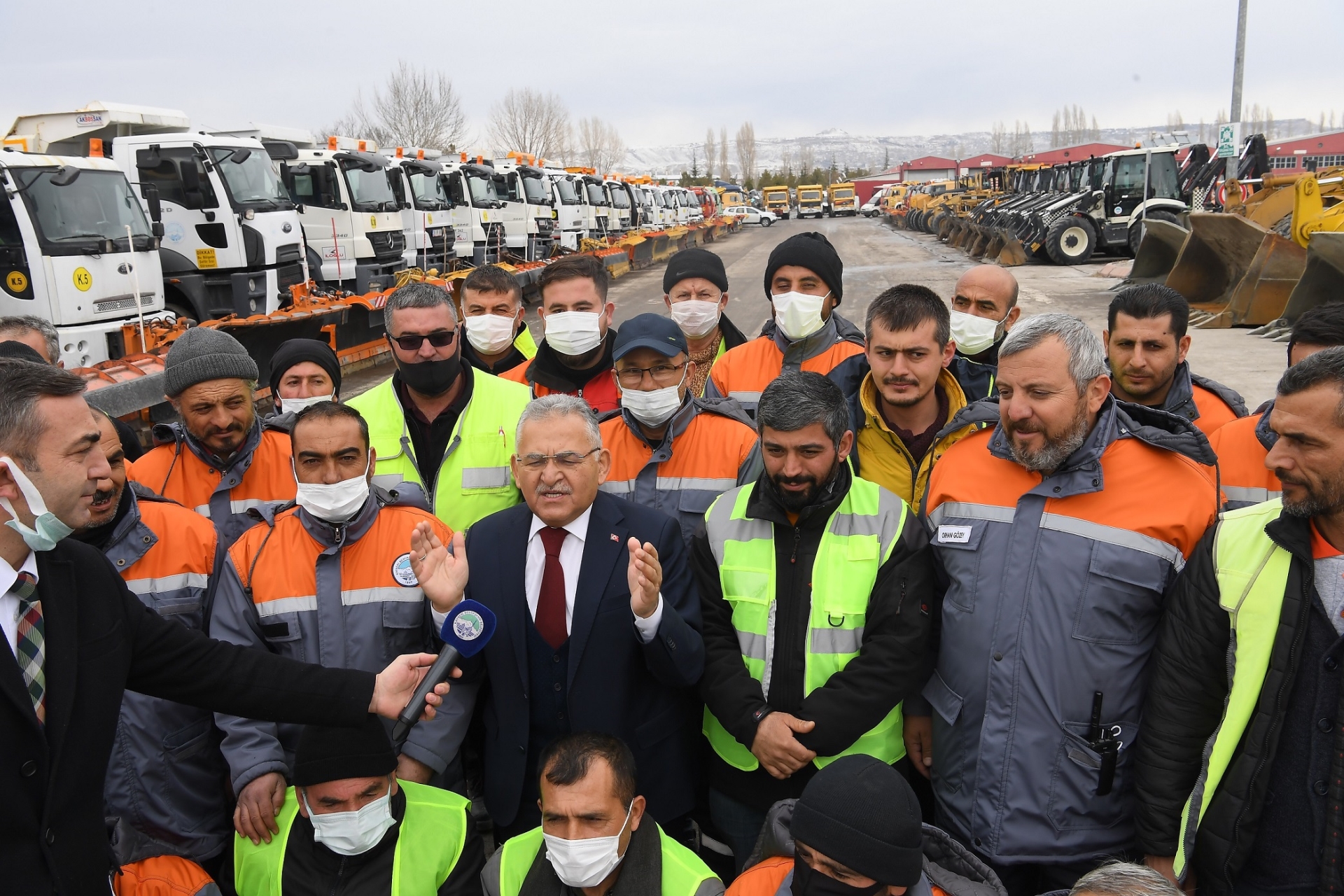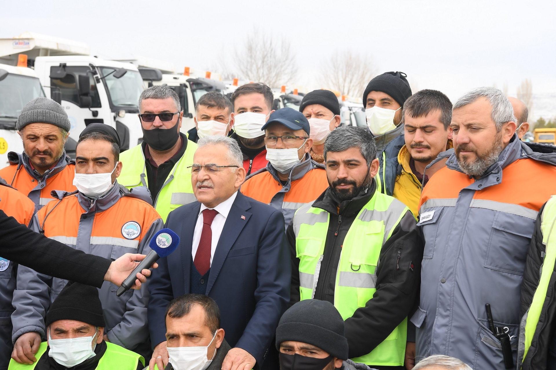 bulundu. Büyükkılıç, “Ekiplerimiz kar yağar yağmaz seferber oluyorlar. Yine kar