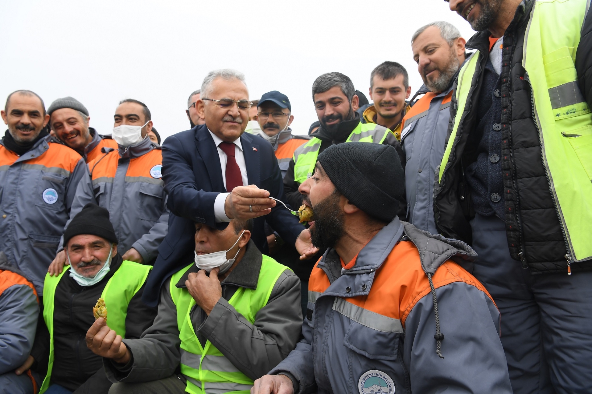 Başkan Büyükkılıç, karla mücadele ekiplerine elleriyle tatlı