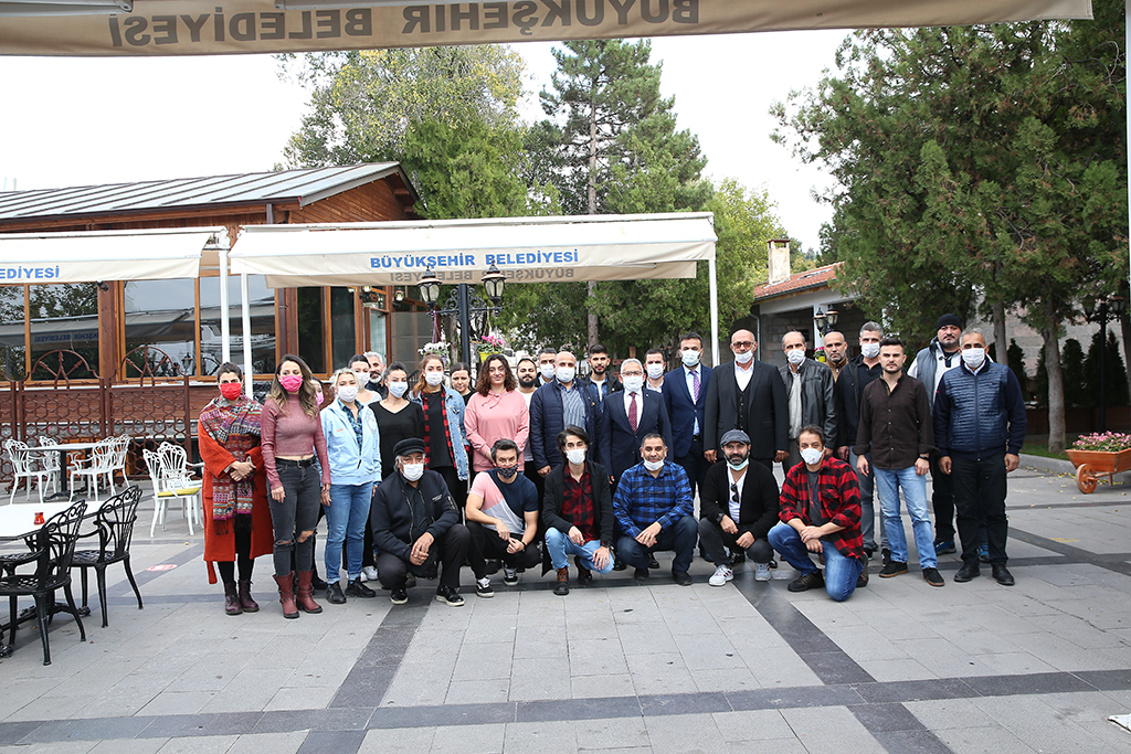 Kayseri Büyükşehir Belediye Başkanı Dr. Memduh Büyükkılıç, Kayseri Devlet Tiyatrosu’nda 5 gün boyunca tiyatroseverlerin karşısına çıkan Bursa Devlet Tiyatrosu sanatçıları ile bir araya geldi. Büyükşehir Belediye Başkanı Dr. Memduh Büyükkılıç, 3 Kasım akşamı Remzi Özçelik’in yazdığı, Berrin Kulya Balkanlar’ın yönettiği Bursa Devlet Tiyatrosu sanatçıları tarafından sahnelenen ‘Taş Bademleri’ oyununu eşi Dr. Necmiye Büyükkılıç ile izlemişti. Başkan Büyükkılıç, 5 gün boyunca Kayseri Devlet Tiyatrosu’nda tiyatro severler ile buluşan Bursa Devlet Tiyatrosu sanatçıları ile bir araya geldi. Kültür sanata Büyükşehir Belediyesi olarak çok önem verdiklerini söyleyen Büyükkılıç, Kayseri Devlet Tiyatrosu’nun kente yeni bir zenginlik, yeni bir güzellik kazandırdığını söyledi. Büyükkılıç, “Kayseri’de yerel yönetim ve hizmetlerimizin dışında kültürel ve sanatsal etkinlikleri artırmak adına büyük bir gayret ve uğraş veriyoruz. Bu kapsamda kazandırdığımız Kayseri Devlet Tiyatrosu kentimiz için çok önem arz ediyor. Bursa Devlet Tiyatrosu’nun yönetiminden yazarına, oyuncularından teknik ekibine kadar hepinize teşekkürlerimi sunmak istiyorum. Gerçekten çok güzel bir oyun olan Taş Bademleri’ni Kayserili tiyatro severlerin beğenisine sundunuz ve bizler de beğeni ile izledik. Başarılarınızın devamını diliyorum” diye konuştu. Bursa Devlet Tiyatrosu sanatçıları da Başkan Büyükkılıç’a ilgi ve alakalarından dolayı teşekkür ederek, Kayseri gibi tarihi ve kültürel zenginlikleri ve güzellikleri olan bir şehirde olmaktan duydukları memnuniyeti dile getirdiler. Erguvan Tesisleri’nde düzenlenen yemekli toplantıda tiyatro sanatçılarının yanı sıra Kayseri İl Kültür ve Turizm Müdürü Şükrü Dursun da yer aldı. Toplantının ardından hatıra fotoğrafı çektirildi.