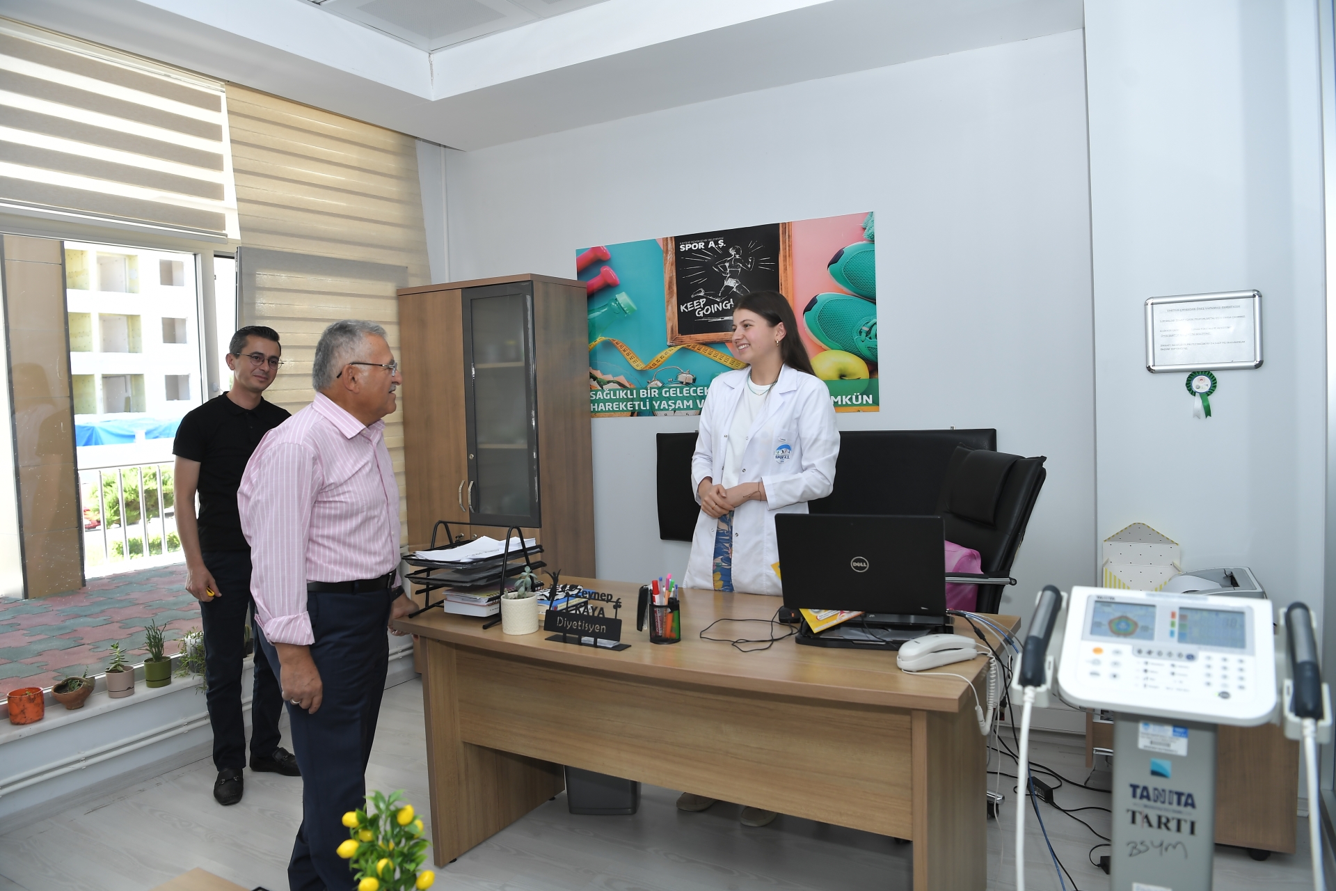 Kayseri Büyükşehir Belediye Başkanı Dr. Memduh Büyükkılıç, mesleki eğitim kursları, spor salonu, yüzme havuzu ve kütüphanesiyle her türlü ihtiyaca cevap veren Beyazşehir Sosyal Yaşam Merkezi’ni ziyaret ederek, incelemelerde bulundu.Büyükşehir Belediye Başkanı Dr. Memduh Büyükkılıç, “Kayserili her zaman en iyi hizmeti hak eder” şiarıyla kentte yapılan tesisleri sık sık gezerek, incelemelerde bulunuyor. Bu kapsamda Beyazşehir Sosyal Yaşam Merkezi’ni ziyaret eden Başkan Büyükkılıç, tesiste incelemelerde bulundu.İlk olarak Beyazşehir Sosyal Yaşam Merkezi’nde verilen diyetisyenlik hizmeti hakkında bilgi alan Başkan Büyükkılıç, daha sonra tesiste bulunan Büyükşehir Belediyesi Kayseri Mesleki Eğitim ve Kültür A.Ş.’de (KAYMEK) ders alan kursiyerlerle sohbet etti. Büyükkılıç, Beyazşehir Sosyal Yaşam Merkezi’nin içerisinde bulunan kütüphaneye de giderek, gençlerle bir araya geldi.Her zaman gençler için Kayseri’de ne gerekiyorsa yaptıklarını ve yapacaklarını dile getiren Başkan Büyükkılıç, burada yaptığı konuşmada şunları söyledi:“Çeşitli faaliyetlerin yapıldığı, gerek Spor A.Ş.’miz gerekse KAYMEK’in dersleri ile vatandaşlarımızın çoğunun vaktini geçireceği bir tesis. Birçok faaliyetin bir arada olduğu bir alan. Öncü ve örnek yatırımlarımızla kent hayatının zorluklarını vatandaşlarımızın atmasına imkân sağlıyoruz. Burada sohbet ettiğimiz gençlerimizin tesislerden duyduğu memnuniyet bizleri de ziyadesiyle mutlu etti.”
