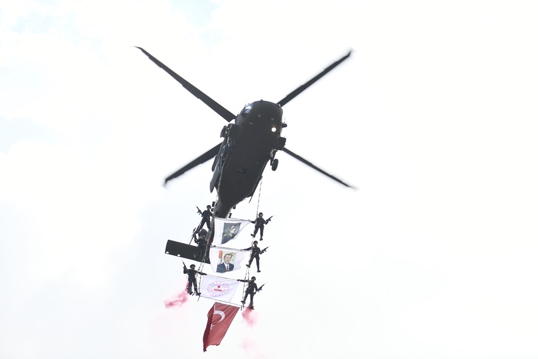 Ayrıca, resmi geçit töreni, AFAD, Kızılay, izciler, gaziler, sporcular, itfaiye personeli, asker ve polislerin kortej geçişi meydanı dolduran vatandaşlardan yoğun alkış aldı. Ayrıca Jandarma Genel Komutanlığı Uçuş Gösteri Timi’nin gerçekleştirdiği helikopter gösterisi, izleyenlere gurur ve heyecan dolu anlar yaşattı.