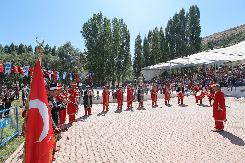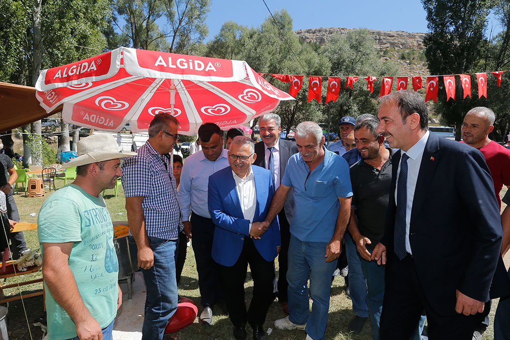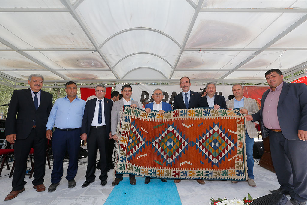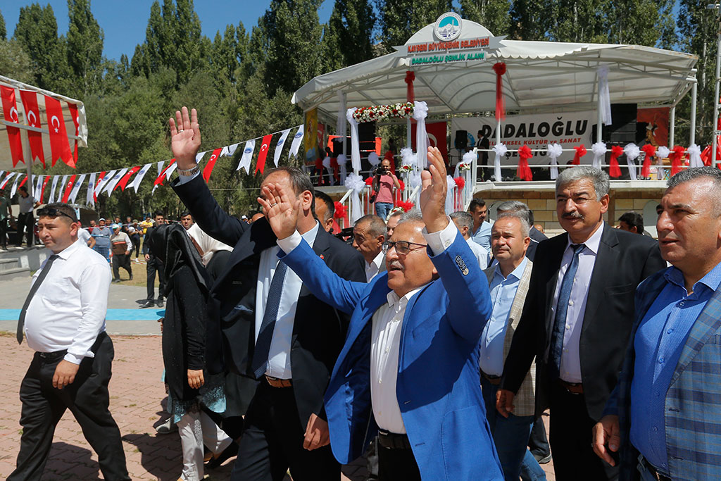 Kayseri Büyükşehir Belediye Başkanı Dr. Memduh Büyükkılıç, farklı vesilelerle ilçeleri ziyaret ederek vatandaşlarla bir araya gelmeye devam ediyor. Başkan Büyükkılıç, bu kez Tomarza’da yapılan Dadaloğlu Şenliklerine katıldı ve bu şenliklerin birliğin, beraberliğin sembolü olduğunu söyledi. Büyükşehir Belediye Başkanı Dr. Memduh Büyükkılıç, Dadaloğlu Şenlikleri’nde vatandaşların büyük ilgi ve sevgisiyle karşılandı. Şenlik alanını gezen Başkan Büyükkılıç, vatandaşlarla selamlaştı. Mehter marşlarının seslendirildiği, aşıkların sahne aldığı, şiirlerin okunduğu şenlikte Tomarza Belediye Başkanı Davut Şahin’in ardından kürsüye çıkan Başkan Memduh Büyükkılıç, “Dadaloğlu’nun Yiğitleri” diyerek sözlerine başladı ve şöyle devam etti. “Sizler Ay Yıldızlı Türk Bayrağımızın, ezanımızın tutkunusunuz. Sizler vatanımızın sevdalısı, yiğitliğin sembolüsünüz. Dadaloğlu’nu bir siyasi arena olmaktan çıkarıp dostluğun, kardeşliğin, muhabbetin, dayanışmanın, birliğin, beraberliğim sembolü haline getirdiniz. Bu güzel şenlikte bulunmak ve sizlerle beraber olmak bizim görevimizdir.” Şenlik alanında çok güzel bir muhabbet ortamı olduğunu ve herkesin yüzünün güldüğünü ifade eden Başkan Büyükkılıç, “Cenabı Allah bu duyguları elimizden almasın” diye konuştu. Dadaloğlu Şenliği’ne katılan Başkan Memduh Büyükkılıç’a en dokuması kilim hediye edildi.