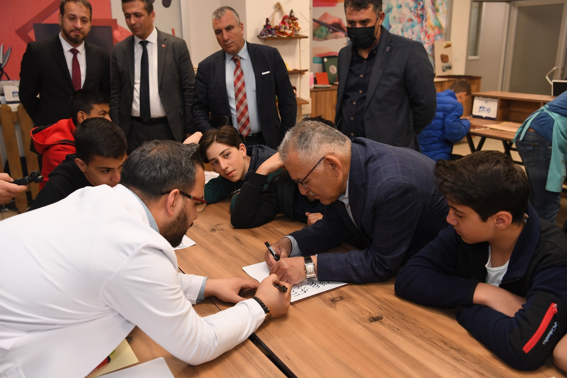 ve her öğrenci ile tek tek ilgilenen Büyükkılıç, Hüsnühat yazı çalışması yaptı,