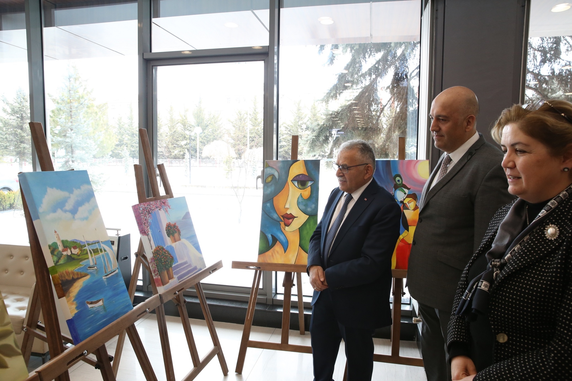 dolayısıyla 14 farklı eserin yer aldığı resim sergisinin açılışını yaptı.