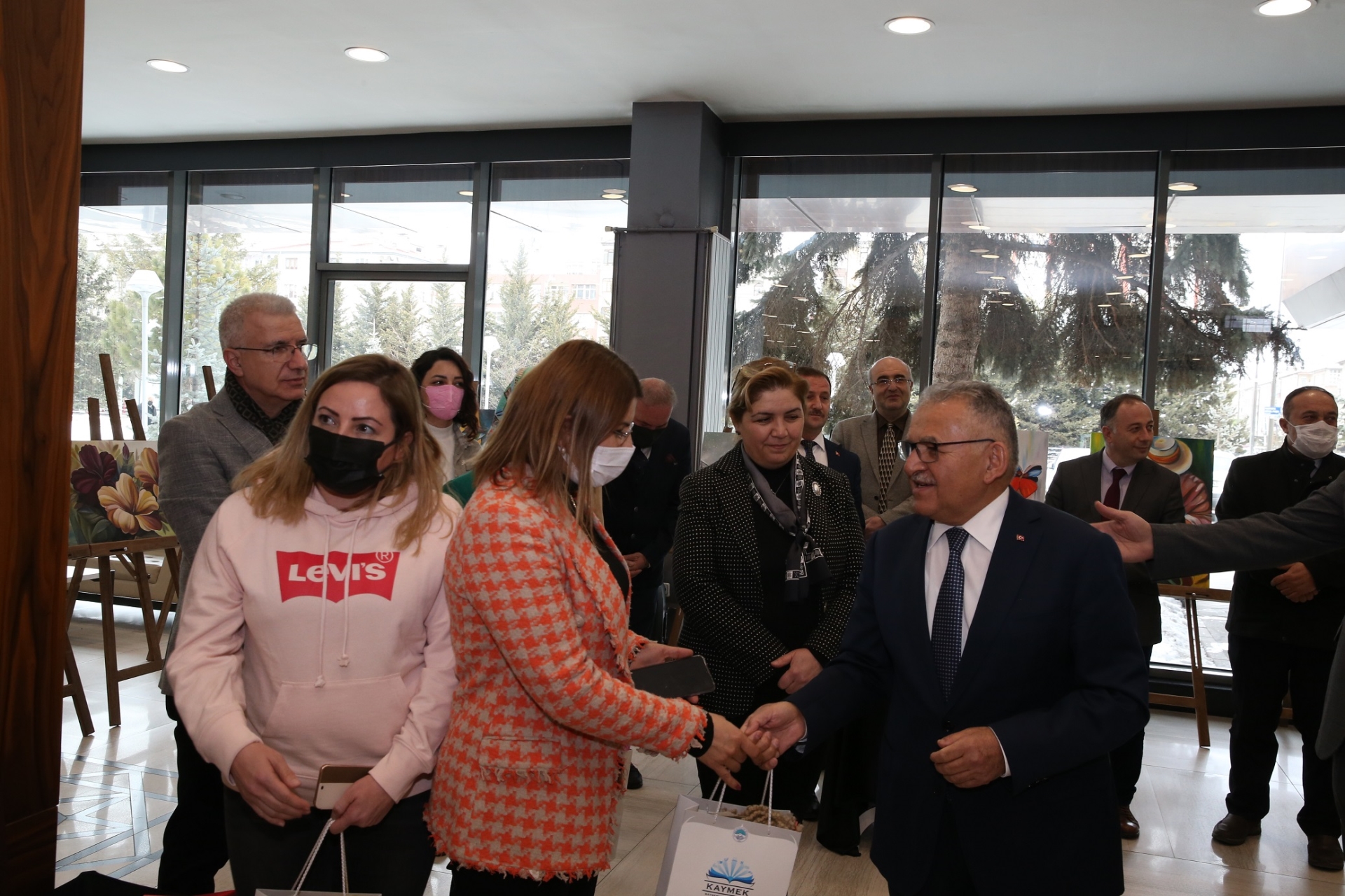 el nakışı ürünün bulunduğu tablo hediye takdim edildi. Başkan Büyükkılıç da