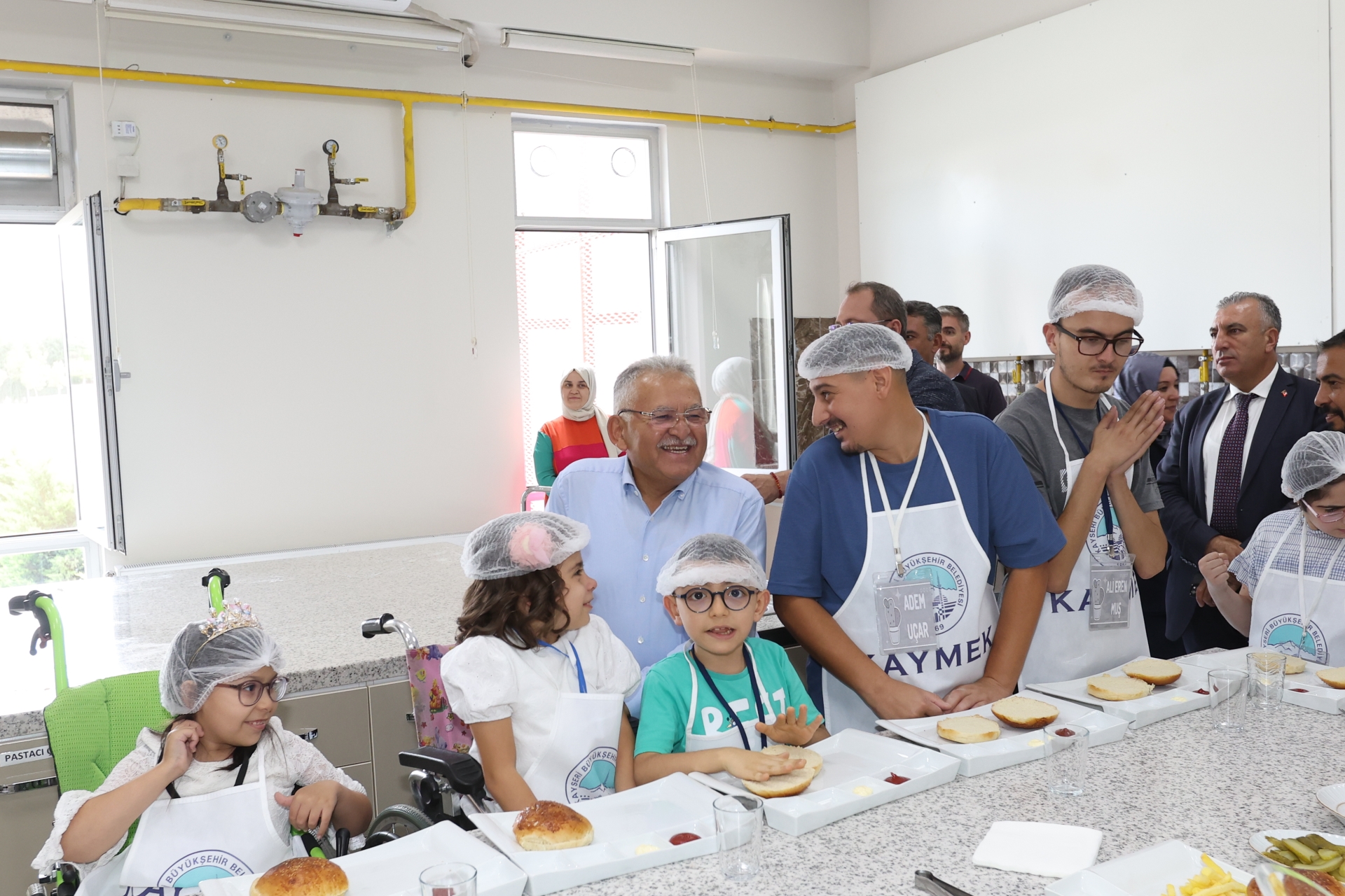 Çocuklar büyük bir heyecan ve mutlulukla kendi yaptıkları hamburgerleri afiyetle yerken, Başkan Büyükkılıç’a ikramda bulunmayı da ihmal etmediler. Tüm masumlukları ve güler yüzleri ile Büyükkılıç’a sarılan özel çocuklar, etkinlikten dolayı teşekkürlerini de ileterek farklı lezzetler de yapabilecekleri etkinlikler istediklerini de belirttiler.