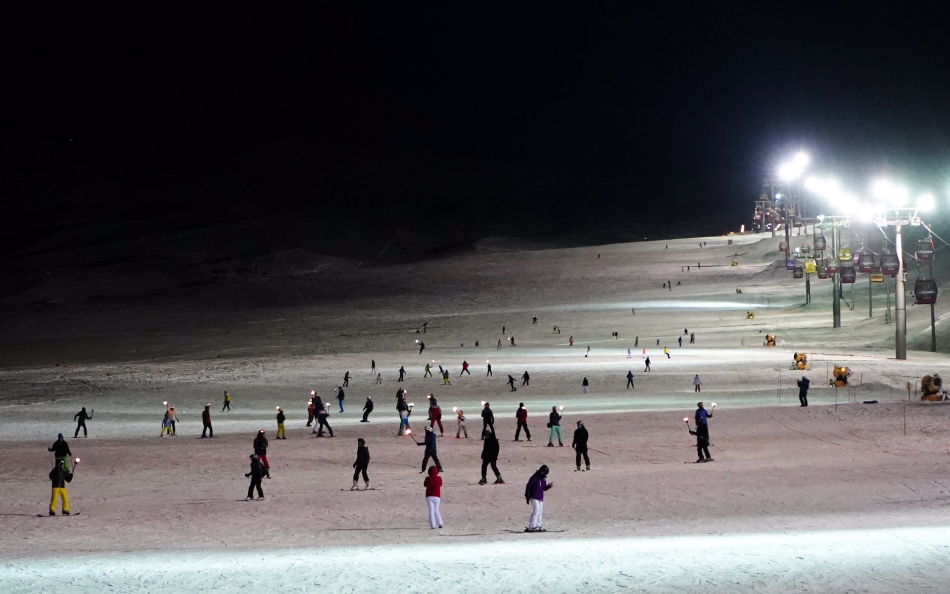merkezlerinde yapılan gece kayağı, Erciyes’imizde de özel olarak aydınlatılan