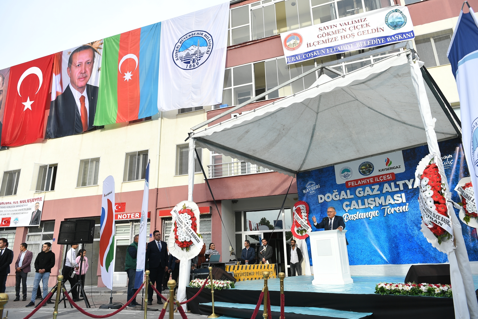 Kayseri Büyükşehir Belediye Başkanı Dr. Memduh Büyükkılıç, Azerbaycan Şuşa Valisi Maftun Abbasov’un katılımlarıyla Felahiye ve Özvatan’da gerçekleşen Doğalgaz Altyapı Çalışması Başlangıç Töreni ile iki ilçeye doğal gaz için ilk adım atıldı.