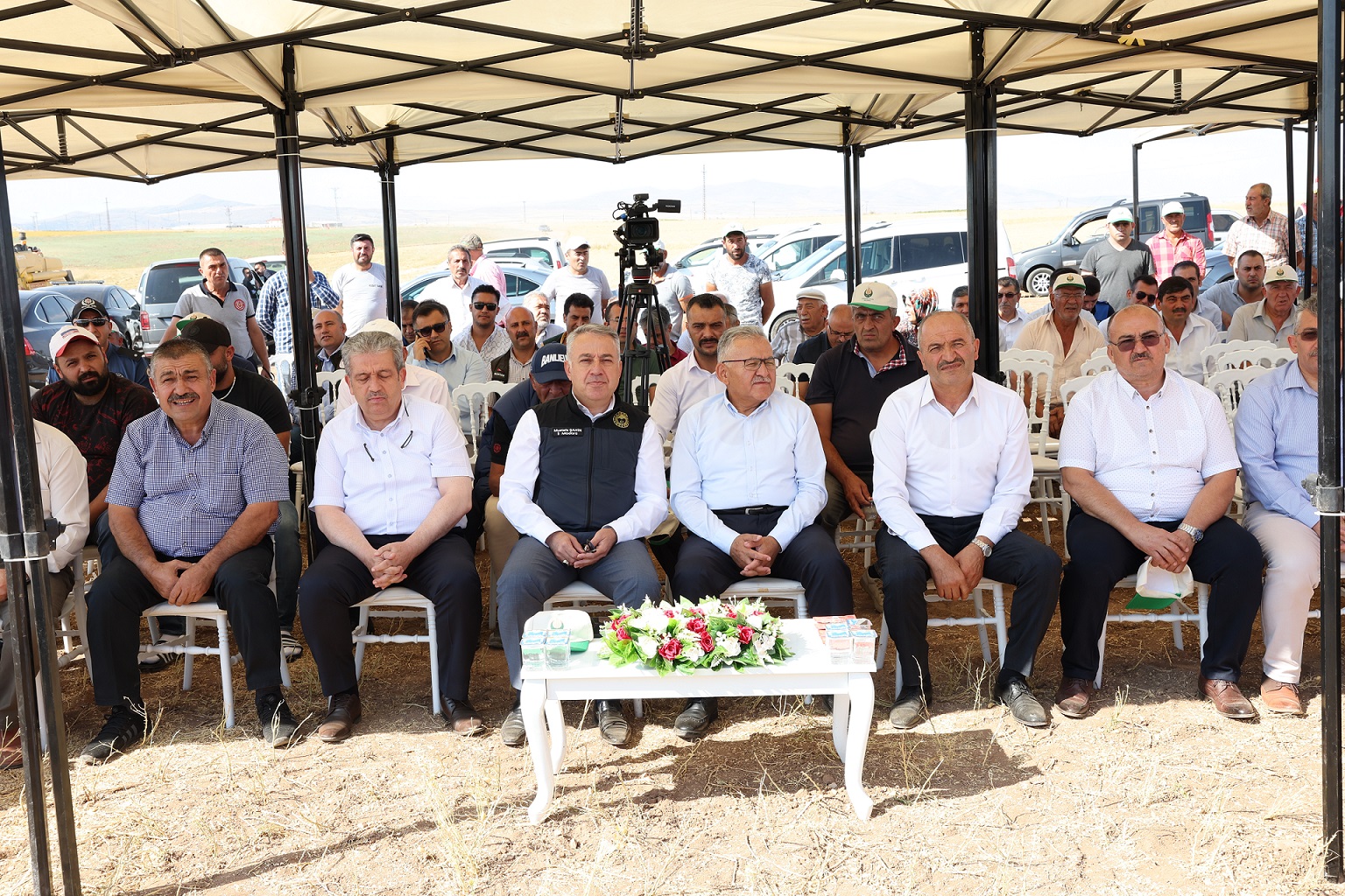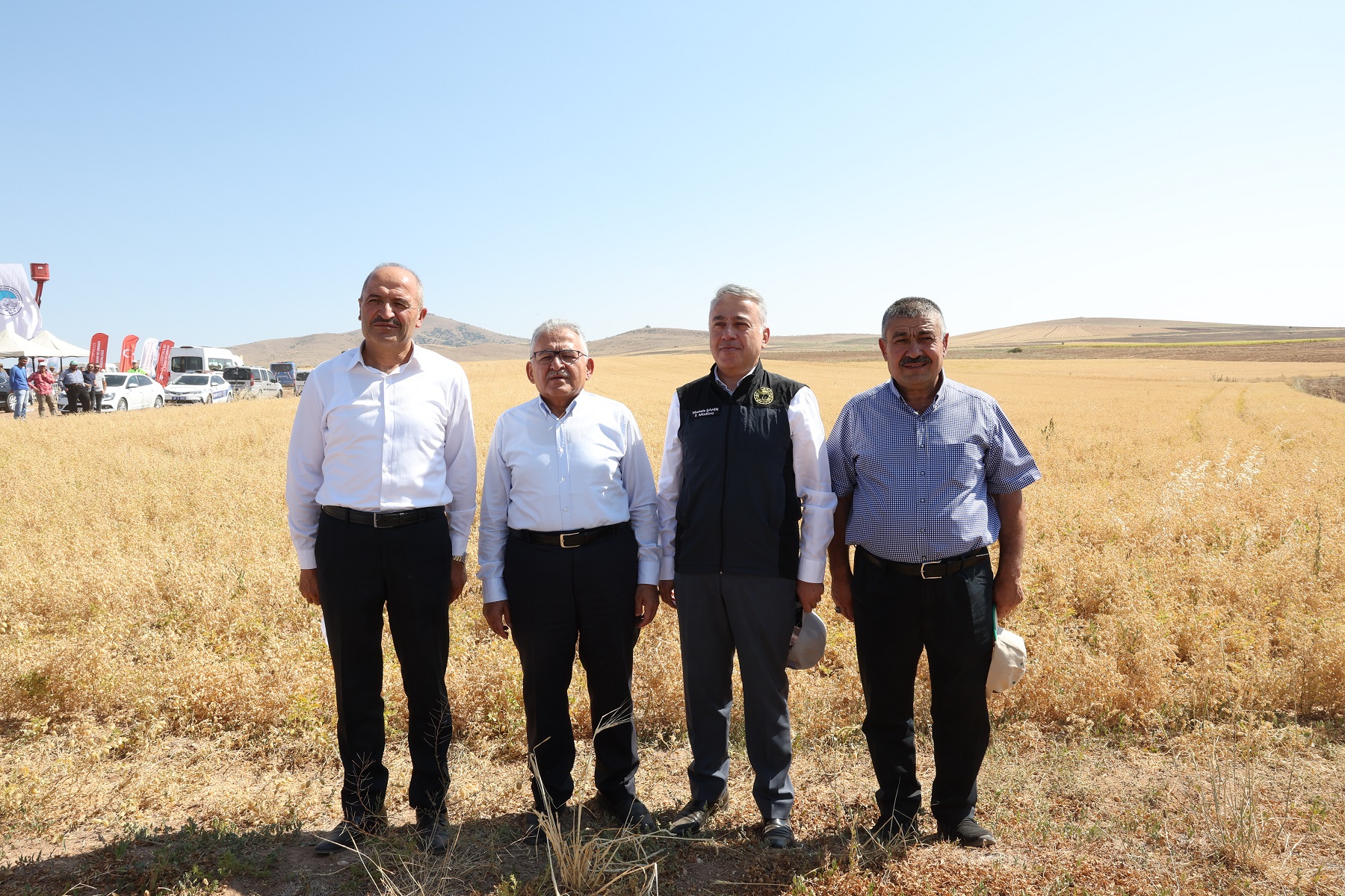 dağıtılan tohumla üretilen nohudun hasadı dualarla yapıldı. Başkan Büyükkılıç,
