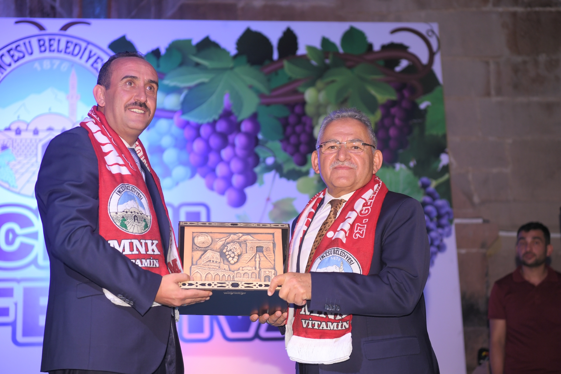 Kayseri Büyükşehir Belediye Başkanı Dr. Memduh Büyükkılıç, AK Parti Yerel Yönetimlerden Sorumlu Genel Başkan Yardımcısı ve Kayseri Milletvekili Mehmet Özhaseki ile birlikte Kayseri’de geleneksel olarak düzenlenen İncesu Geleneksel Kültür Turizm ve Üzüm Festivali’ne katılarak, İncesu’daki vatandaşlarla bir araya geldi. Coşkuyla kutlanan festivalde İncesu’da yetişen eşsiz, çeşit çeşit üzümler sergilendi.Kayseri’de geleneksel olarak bu yıl 27’incisi düzenlenen Üzüm Festivali etkinlikleri başladı. Etkinliklere, Başkan Büyükkılıç’ın yanı sıra AK Parti Yerel Yönetimlerden Sorumlu Genel Başkan Yardımcısı ve Kayseri Milletvekili Mehmet Özhaseki, Kayseri Valisi Gökmen Çiçek, Eski Dönem Enerji ve Tabi Kaynaklar Bakanı ve AK Parti Kayseri Milletvekili Taner Yıldız, İncesu Kaymakamı Aydın Göçer, AK Parti Kayseri Milletvekili Hülya Nergis Atçı, MHP Kayseri Milletvekili Baki Ersoy, Talas Belediye Başkanı Mustafa Yalçın, İncesu Belediye Başkanı Mustafa İlmek ve çok sayıda vatandaş katıldı.