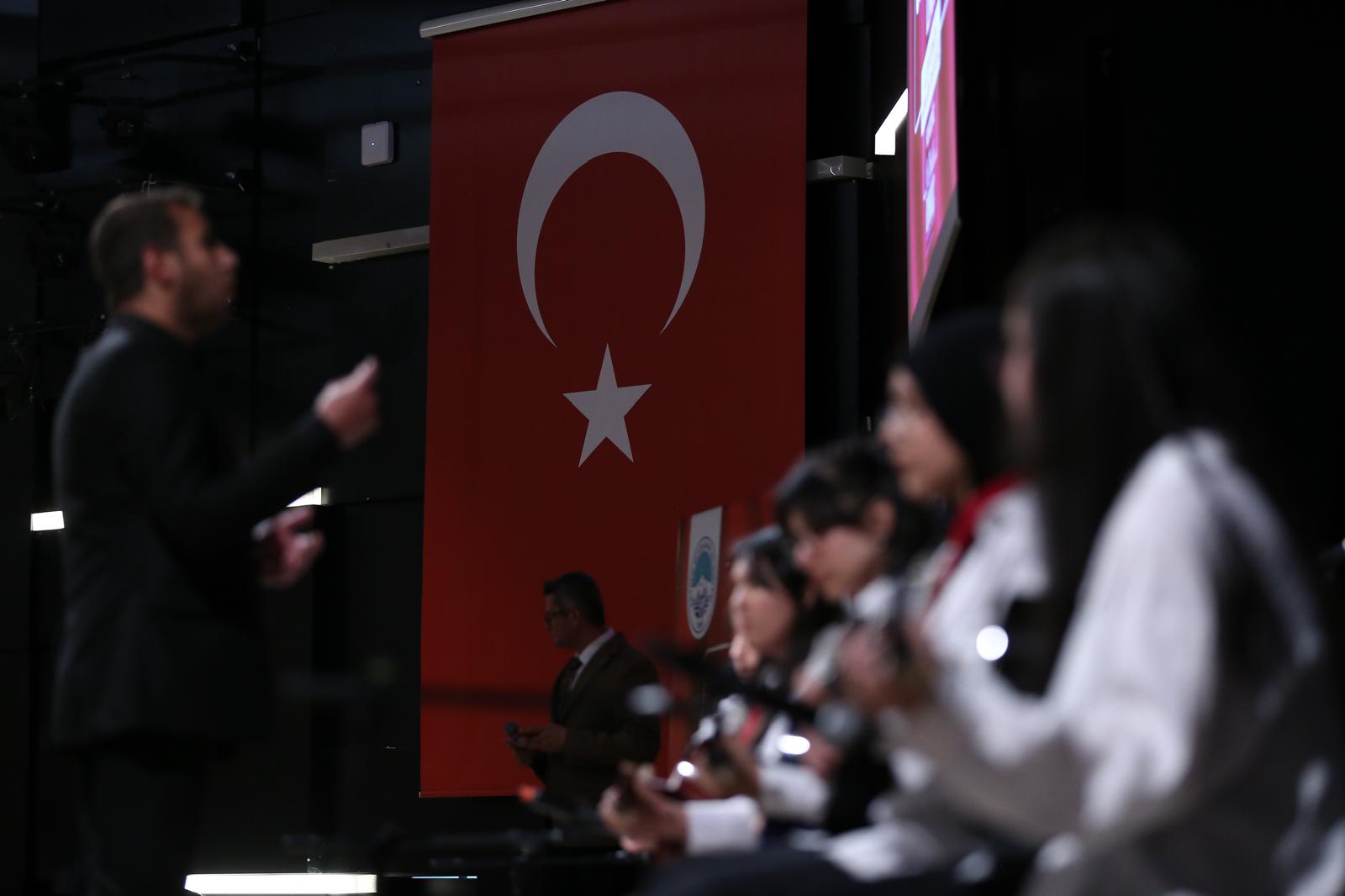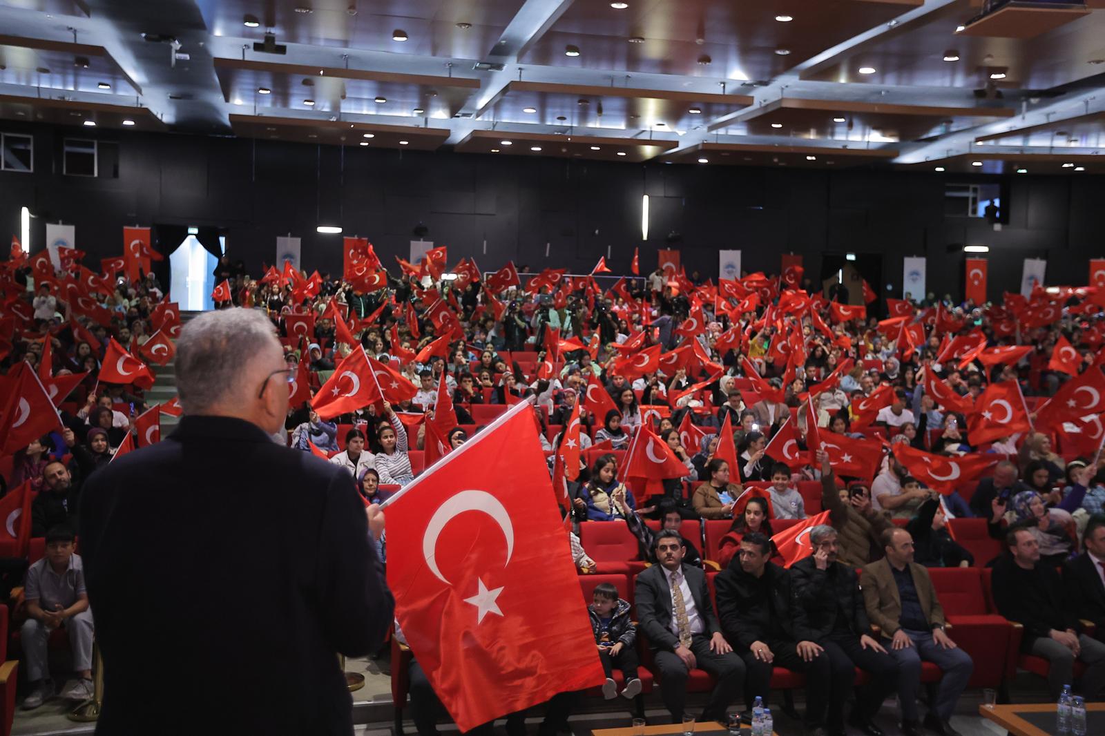 Salonu tıklım tıklım dolduran gençler, ellerinde Türk bayrakları ve ‘Ölürüm Türkiyem’ şarkısı ile Başkan Büyükkılıç’ı coşku içerisinde karşıladılar. Gençlerin alkışları ve sevgi gösterileri eşliğinde kürsüye çıkan Büyükkılıç, “Gençler alnınızdan öpüyorum sizleri, iyi ki varsınız” diyerek sözlerine başladı.