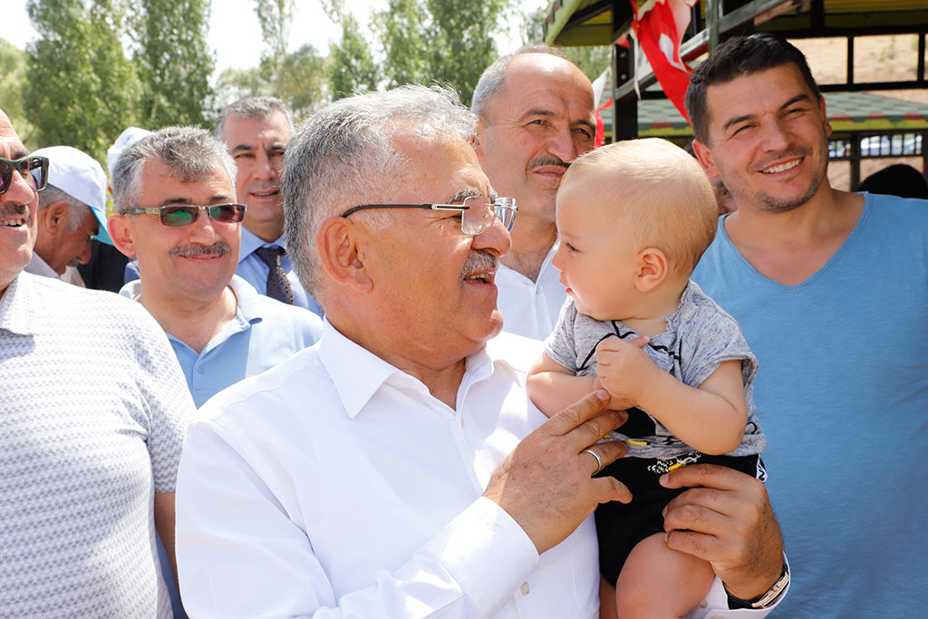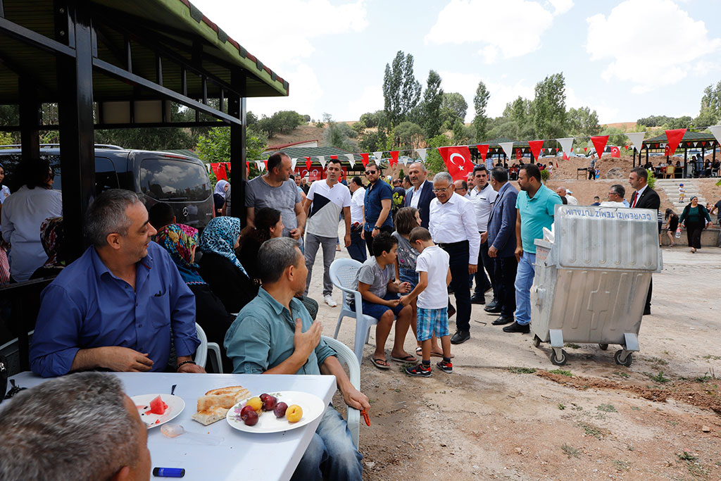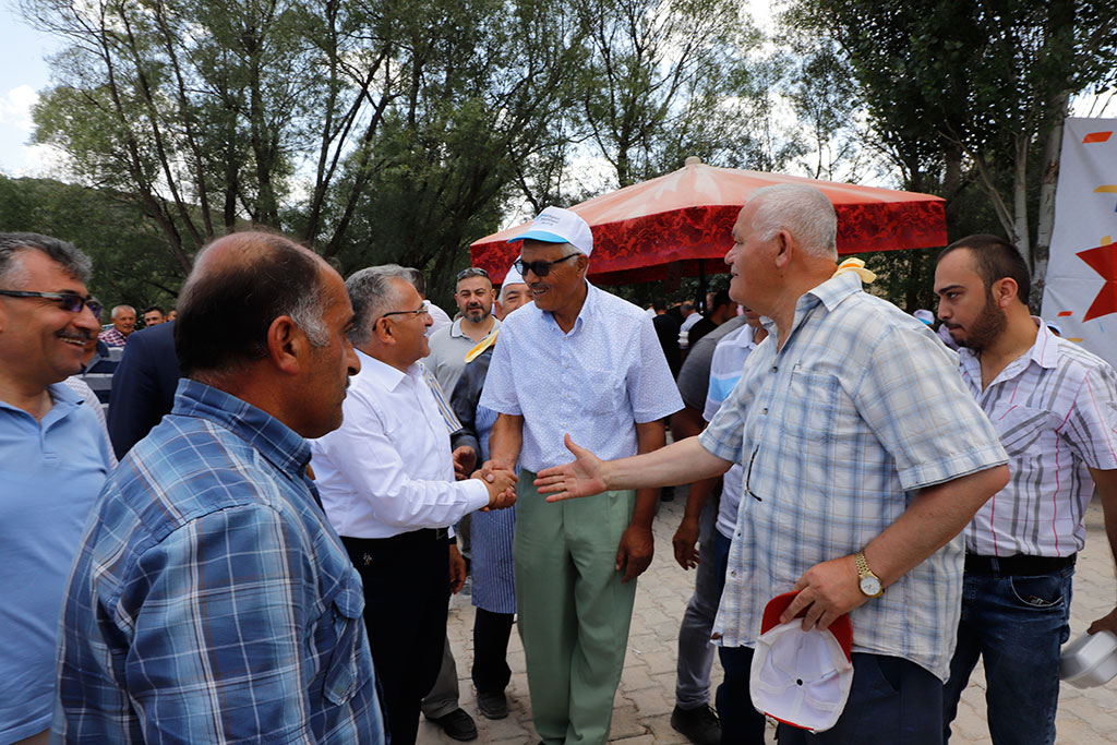 Hafta sonu Özvatan ilçesinde düzenlenen Geleneksel Kültür, Turizm ve Bal Festivali ile Bünyan’ın Karakaya Mahallesi’nde yapılan Seyit Halil Devletli’yi Anma ve Gurbetçiler Günü Pilav Şenliği’ne katılan Kayseri Büyükşehir Belediye Başkanı Dr. Memduh Büyükkılıç, Felahiye’nin Kayapınar Mahallesi’nde düzenlenen şenlikte de gurbetçilerle bir araya geldi. Başkan Büyükkılıç, şenlikte yaptığı konuşmada birlik beraberlik mesajları verdi. Büyükşehir Belediye Başkanı Memduh Büyükkılıç, Gurbetçiler Günü Pilav Şenliği’ne katılmak üzere gittiği Kayapınar’da Felahiye Belediye Başkanı Vural Coşkun ve vatandaşlar tarafından karşılandı. Şenlik alanında büyük ilgi gören Başkan Büyükkılıç, vatandaşlarla selamlaştı, fotoğraflar çektirdi ve çocuklarla yakından ilgilendi. Şenlikte konuşan Felahiye Belediye Başkanı Vural Coşkun, Büyükşehir Belediye Başkanı Memduh Büyükkılıç ile uyumlu bir şekilde çalıştıklarını belirterek, “Başkanımız göreve geldiği günden beri gece gündüz demeden çok yoğun bir şekilde çalışmasına rağmen festivallere de katılarak bizlerle beraber oluyor. Memduh Başkanımız Cumhurbaşkanımızın dediği gibi bir taraftan hizmet belediyeciliği, diğer yandan gönül belediyeciliği yapıyor” dedi. Büyükşehir Belediye Başkanı Memduh Büyükkılıç da bu tür festivallerin birlik, beraberlik, kardeşlik ve dayanışmaya vesile olduğunu söyledi. En güzel hizmeti vermek için gece gündüz çalıştıklarını ifade eden Başkan Büyükkılıç, “Ay Yıldızlı Bayrağımızın ve ezanlarımızın gölgesi altında herkes birbiriyle buluşuyor, görüşüyor, tanışıyor ve kaynaşıyor. Allah huzurumuzu, birliğimizi ve beraberliğimizi bozmasın. Birlikte ve beraberlikte rahmet var. Sizler her şeye layıksınız” diye konuştu. Başkan Büyükkılıç, katılımcıların yaklaşan Kurban Bayramı’nı da tebrik etti.
