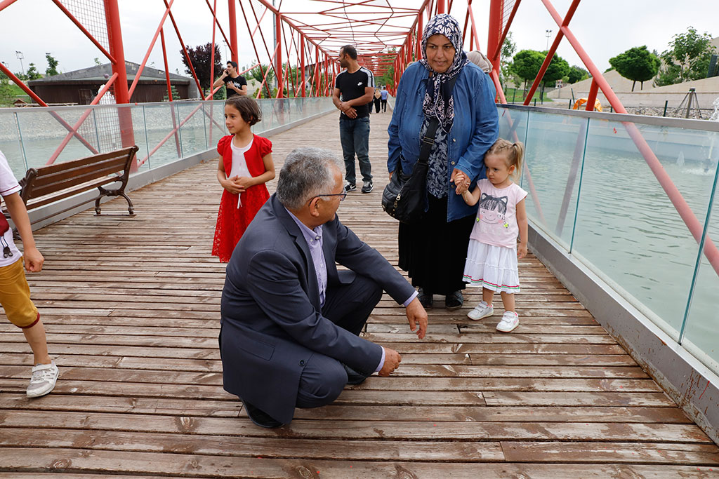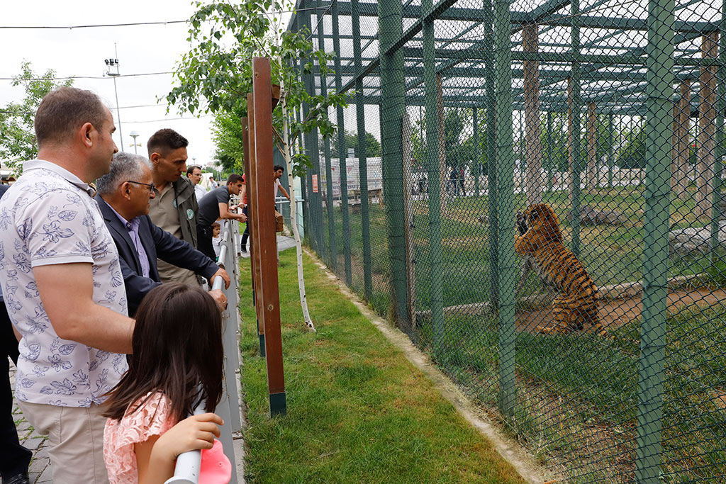 Kayseri Büyükşehir Belediye Başkanı Dr. Memduh Büyükkılıç, 9 günlük tatil süresince yaklaşık 50 bin kişinin ziyaret ettiği Anadolu Harikalar Diyarı’ndaki Hayvanat Bahçesi’ne giderek vatandaşlarla bir araya geldi. Büyükşehir Belediye Başkanı Dr. Memduh Büyükkılıç, Ramazan Bayramı’nda ücretsiz olarak vatandaşların ziyaretine açılan ve büyük ilgi gören Hayvanat Bahçesi’ni ziyaret etti. Hayvanat Bahçesi, üç günlük Ramazan Bayramı boyunca 27 bin 500, 9 günlük bayram tatili süresince de 49 bin 500 kişi tarafından ziyaret edildi. Bayram tatilinin son gününde Anadolu Harikalar Diyarı’na giden Başkan Memduh Büyükkılıç, Hayvanat Bahçesi’ni gezen vatandaşlarla görüştü. Özellikle çocuklarla yakından ilgilenen Başkan Memduh Büyükkılıç, Hayvanat Bahçesi’ni ziyaret eden vatandaşlarla hatıra fotoğrafı çektirdi.